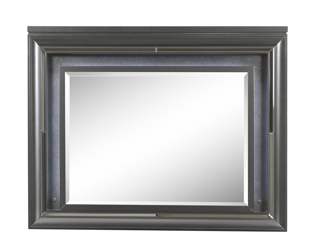 ACME Sawyer Mirror w/LED, Metallic Gray, 49" x 39"H, 27Lbs. Materials: Wood, Mirror, LED, Composite Wood