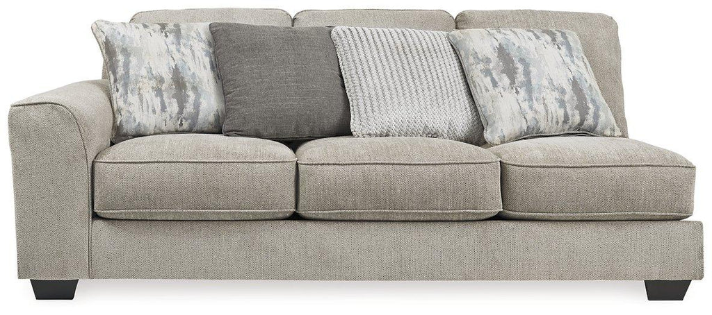 Master the art of cool, clean-lined style—loaded with sumptuous comfort—with this sectional. Plush and posh, this decidedly contemporary sectional is dressed to impress with wedge-cut track armrests and box cushions for a minimalist chic aesthetic. Muted-hue designer throw pillows incorporate texture and an irresistibly soft touch.