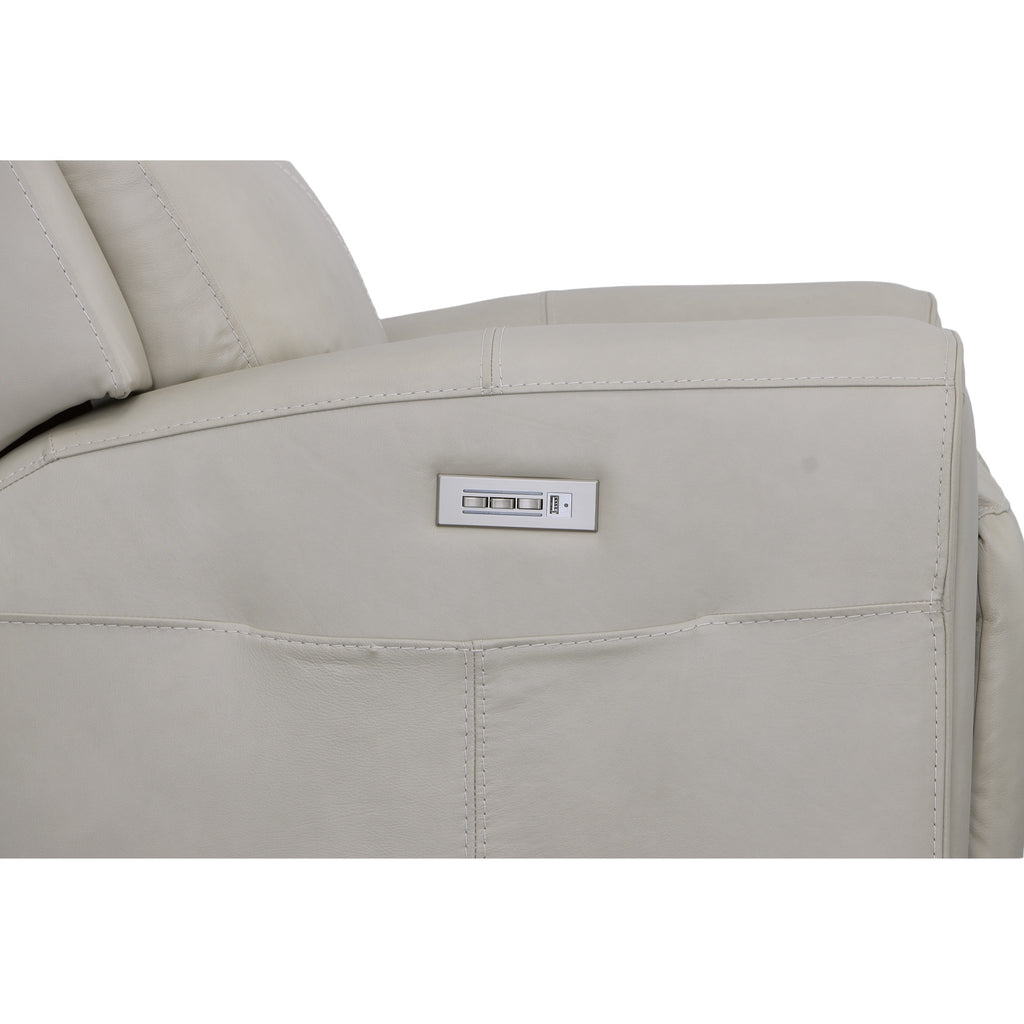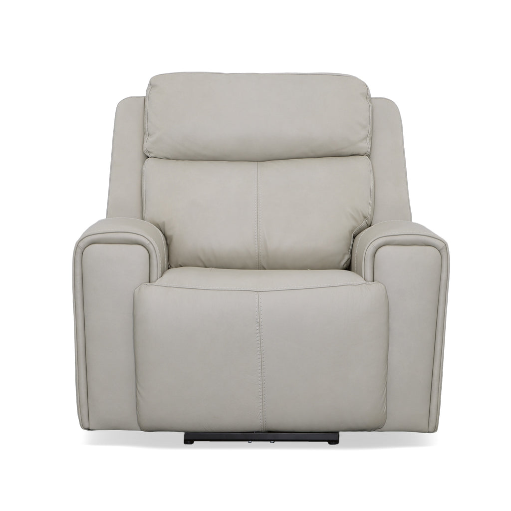 Recline into relaxation with the Barnett power recliner with power headrest and lumbar. As you lounge, our Zero Gravity recline technology cradles your body and gives you a feeling of weightlessness. Dial in your perfect level of comfort with a power control that independently adjusts the recline, headrest and lumbar for extra back support. For your convenience, the recliner features a USB charging port built into the power control to keep devices charged and a handy side pocket for storing remotes. A waterfall chaise takes pressure off tired legs, while a wide, contoured seat allows you to sit comfortably for as long as you like. Our patented Flexsteel DualFlex Spring Systemª provides a pleasing mix of firmness and flexibility as you sit. And thoughtful enhancements, including wide track arms with durable top-stitching and attractive welt trim, give this recliner an elevated look. Finished in our premium top-grain leather, this recliner is sure to look good for years to come.