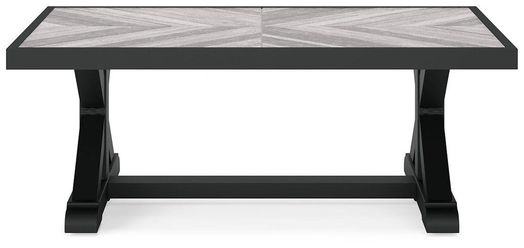 Sporting an easy-on-the-eyes look inspired by driftwood, this coffee table elevates the art of alfresco living. Beautiful and durable enough for indoor and outdoor use, the high-style/low maintenance table charms with X-leg farmhouse styling, while its thick porcelain tabletop adds a natural complement.