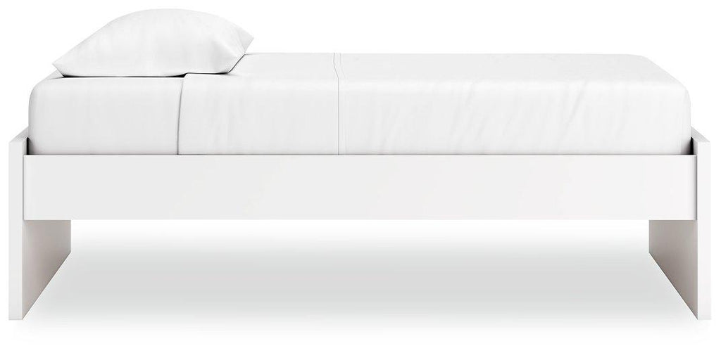 Create the modern bedroom of your dreams. This twin platform bed offers a minimal design with maximum style, combining ultra-clean lines and an easy-elegant solid white finish. There's no box spring or foundation needed, so you can splurge on a mattress that's sure to carry you away to a soothing place.