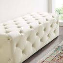 Enliven your decor with Amour. This tufted button entryway bench comes upholstered in soft and durable stain-resistant performance velvet fabric and dense foam padding for a luxurious seating experience. Instantly update your entryway, foyer, hallway, living room with this versatile 60-inch long bench. Bench Weight Capacity: 500 lbs.