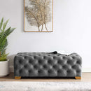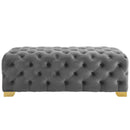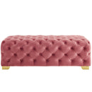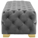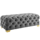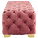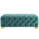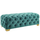 Refresh your entryway, bedroom, or living room decor with the Sensible Accent Bench. Deep button tufting covers the full expanse of Sensible�s soft, stain-resistant performance velvet upholstery. Generous dense foam padding enhances a luxurious seating experience, while four gold stainless steel legs with non-marking foot caps provide reliable support in this glamorous entryway bench perfect for home or apartment. Bench Weight Capacity: 441 lbs. Set Includes: One - Sensible Button Tufted Bench Performance Velvet Polyester Upholstery Durable Stain-Resistant Fabric Elegant Deep Button Tufting Gold Stainless Steel Legs Dense Foam Padding/Fully Assembled Non-Marking Foot Caps Bench Weight Capacity: 441 lbs. Overall Product Dimensions: 21"L x 49"W x 16.5"H Seat Height: 16.5"H