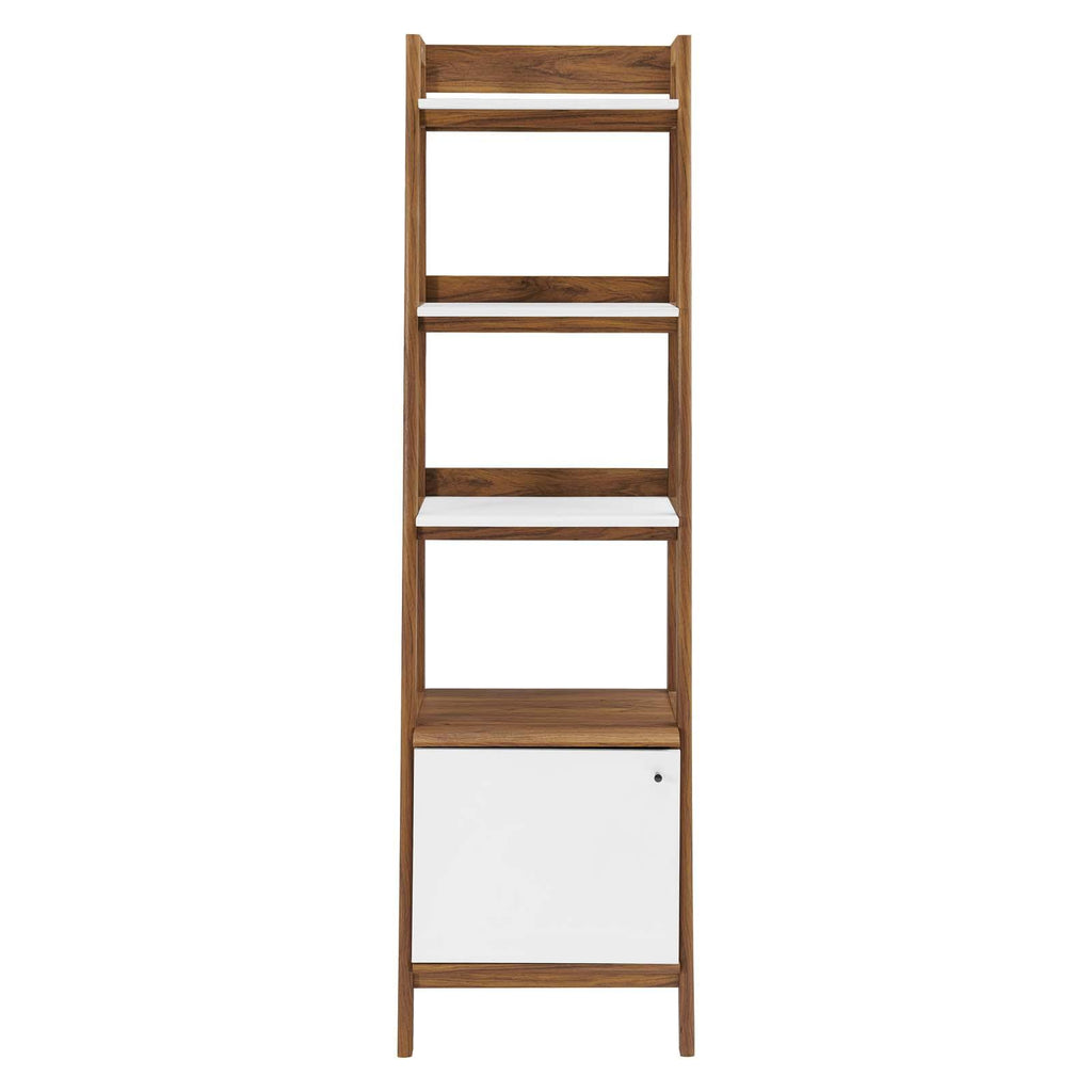 Stack your favorite reads and display home accessories with the Bixby 21" Bookshelf. Featuring a slim tiered silhouette, this bookcase blends organic wood grain with sleek white shelves to create beautiful contrast. With plenty of room for storage and display, this bookshelf is complete with three spacious shelves and a concealed storage area on the bottom to keep living room, home office, or bedroom essentials out of sight. This display stand is crafted with particleboard and MDF for a sturdy construction that's built to last.