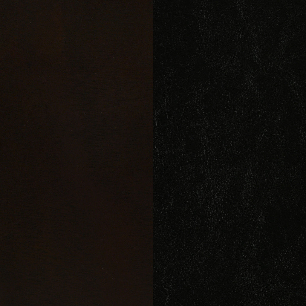 Create a refined retreat with this transitional bedroom set, pairing modern simplicity with timeless craftsmanship. The bed features channel-stitched black leatherette panels framed in a warm cappuccino finish, complemented by clean-lined storage pieces with brushed silver hardware. Each component is crafted from solid wood, veneer, and engineered wood for enduring strength. Blending style and function, this coordinated suite transforms the bedroom into a space of comfort and sophistication._x005F_x000D_ Key Features: • Four-piece bedroom set in cappuccino finish with cohesive design • Bed features black leatherette panels with vertical stitching • Nightstand and dresser offer generous drawer capacity • Mirror’s leatherette trim ties the collection together visually • Constructed from rubberwood, veneer, and engineered wood • Metal hardware creates contrast and ease of use