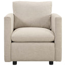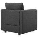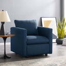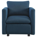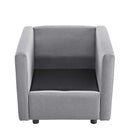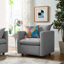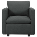 Lounge in style with Activate. A versatile addition to a family room, apartment, office, or small living space, Activate is a cozy modern chair made with dense foam padding, upholstered in soft polyester fabric, and black wood legs. Say goodbye to the days of hauling heavy furniture. Activate offers modern-day convenience as it ships directly to your home or apartment in a portable, compact box. With a casual yet tailored aesthetic, this living room accent chair easily unpacks to become a favorite lounge spot in your home. Chair Weight Capacity: 441 lbs.
