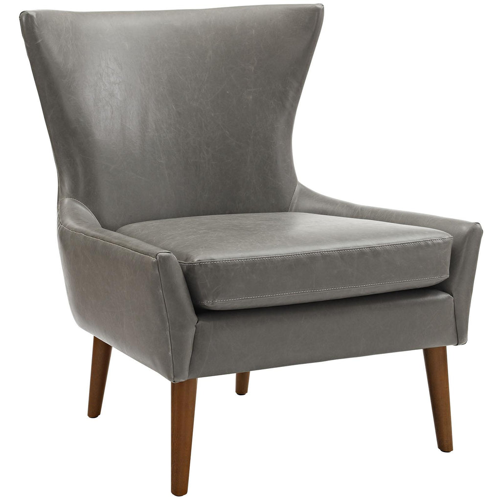 Soar aloft with the Keen Armchair. Organically crafted with an expansive wingtip design, comfortable plush seat cushion, and supportive seat back, Soar reimagines mid-century d�cor for the modern home. Fashioned with clean lines and a sophisticated form, Keen features solid walnut stained wood legs, dense foam padding, and fine vinyl in this charming armchair perfect for living rooms, apartments, and meeting areas.