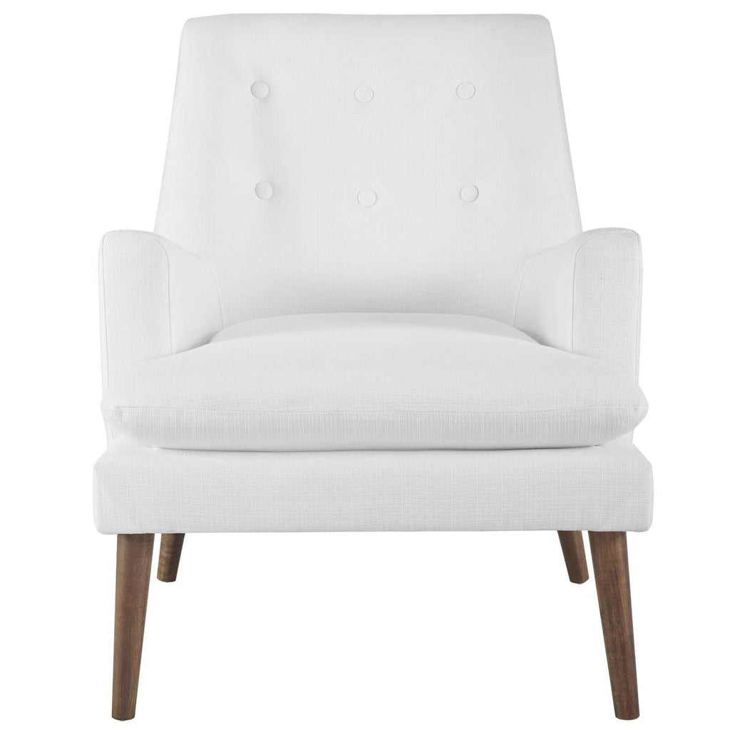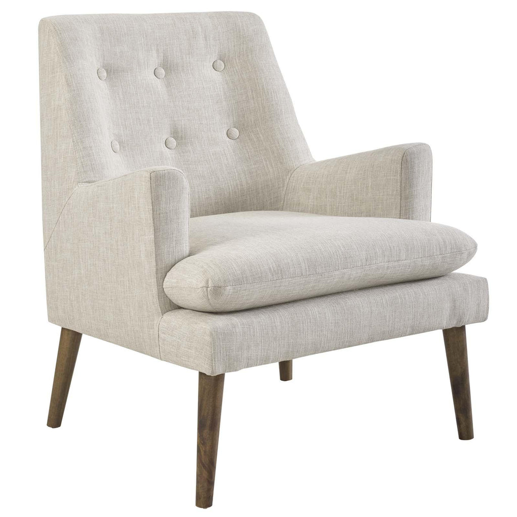 Unwind from daily stresses in the welcoming arms of the mid-century modern Leisure Lounge Chair. Leisure�s high-density foam seat and button tufted back surround you with comfort. Whether curled up with a favorite novel or entertaining guests, with flared armrests and a striking silhouette, Leisure will stand out as a modern beacon of stylish repose. Outfitted with four walnut-stained wood dowel legs with non-marking foot pads and soft polyester fabric upholstery, Leisure complements a living room, lounge space or bedroom and supports up to 331 pounds.