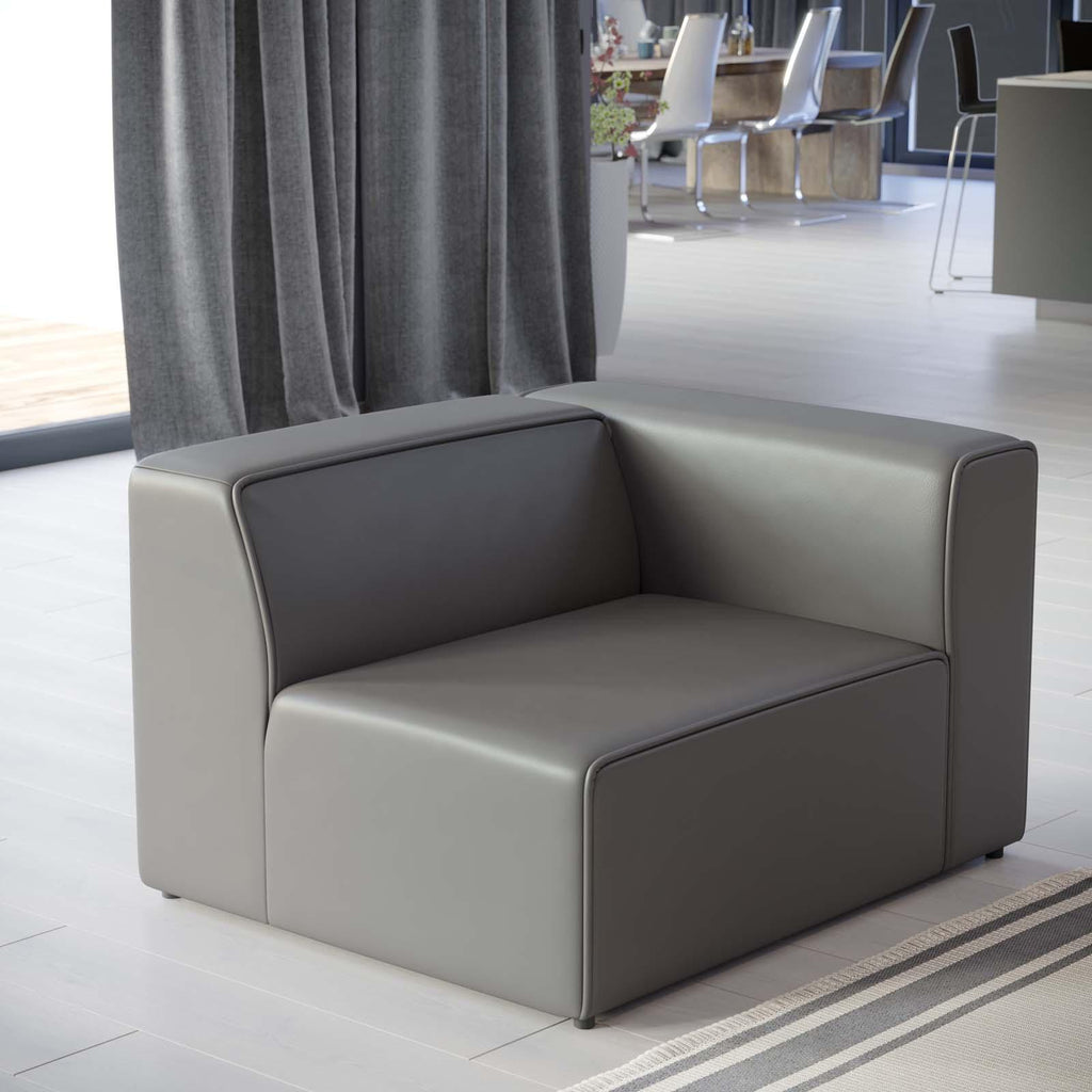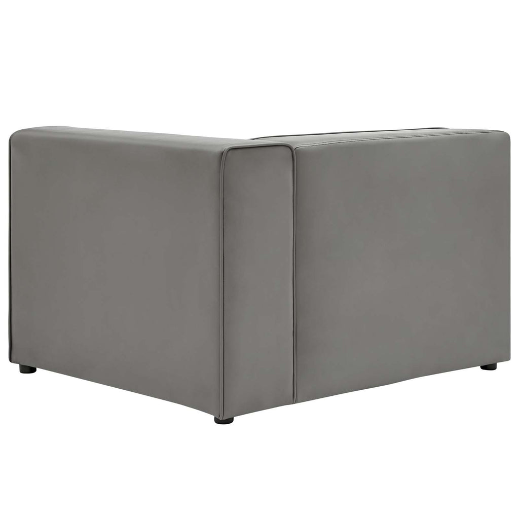 Kick back and relax with the Mingle Vegan Leather Right-Arm Chair. Designed to wash away the hindrances that obstruct visual space, Mingle comes expansively designed with generous seating and dense foam padding that allows for just the right amount of giving. Mingle easily positions according to the needs of the moment and features rich vegan leather upholstery with elegant piping and plastic legs for steady support. Host animated living or lounge room get-togethers with a modular sectional sofa seating assortment perfect for contemporary modern d�cors. Set Includes: One - Mingle Right-Arm Chair Sectional Sofa Right-Arm Chair Vegan Leather Upholstery Generous Foam Padded Cushions Elegant Trim Piping Sturdy Plastic Legs Chair Weight Capacity: 440 lbs. Overall Product Dimensions: 43.5"L x 37"W x 27"H Seat Dimensions: 25"L x 34.5"W x 15.5"H Armrest Dimensions: 28.5"L x 9"W x 27"H Backrest Dimensions: 8.5"L x 34.5"W x 27"H