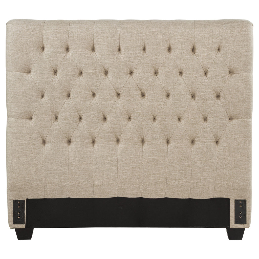 Set the tone in your bedroom with a stylish, modern headboard. This upholstered design requires a bed frame (not included) and creates a fresh, refined look without taking up too much space, leaving your bedroom open and airy. Its neutral upholstery sets the tone in your bedroom decor, while plush padding creates an inviting, cozy impression. Button tufting creates a diamond pattern, delivering the perfect blend of classic and contemporary design themes. Complete with espresso finish block feel that bring stylish appeal.