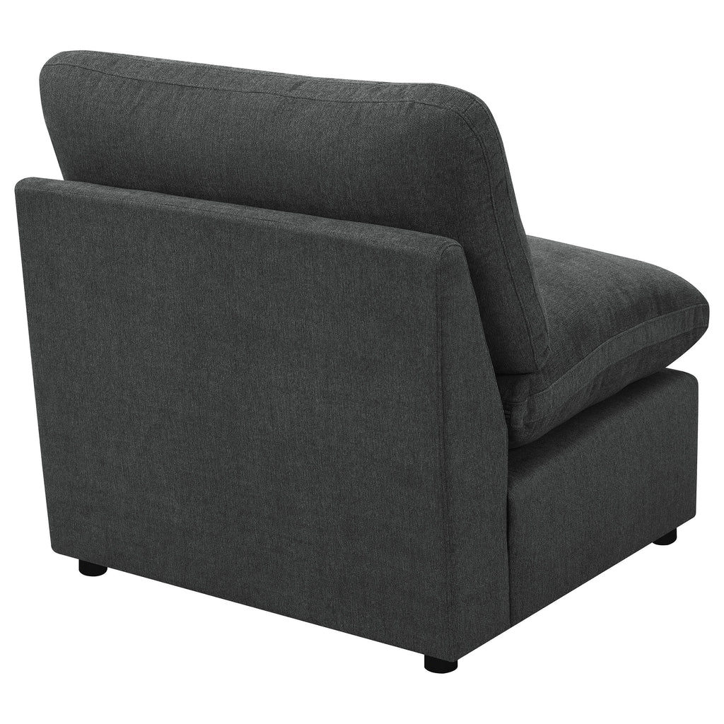 Add versatility to your modular sectional with the armless chair, designed to seamlessly blend with your existing furniture. This chair features a sleek, modern design and premium down-like filled cushions for exceptional comfort. Perfect for creating additional seating without taking up too much space. Key Features: • Armless chair for modular sectional • Sleek, modern design enhances any decor • Premium down-like filled cushions for exceptional comfort • Perfect for creating additional seating • Seamlessly blends with existing furniture