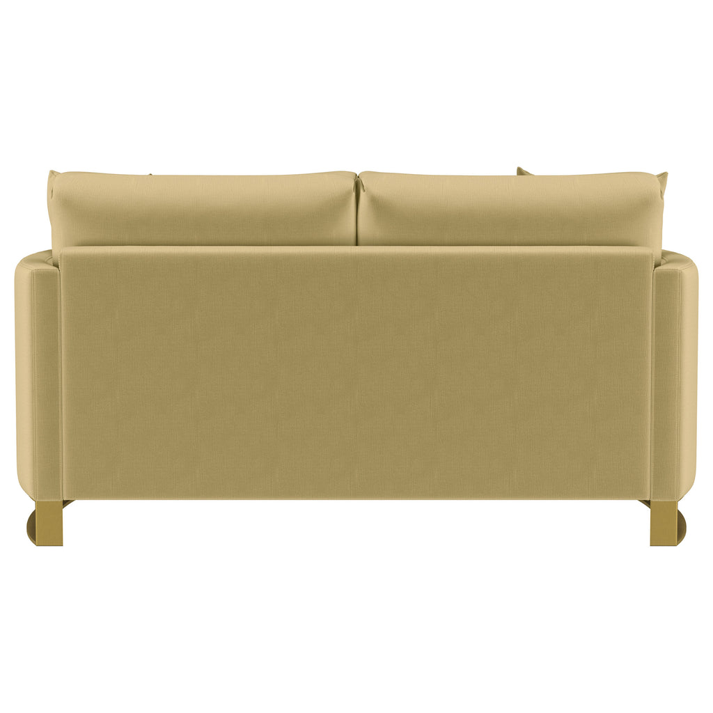 Indulge in opulent comfort with this textured velvet loveseat. Its reversible feather blend seat and back cushions, complemented by curved arms and gold stainless steel legs. Smooth upholstery and lustrous details blend simplicity with timeless splendor, making this piece a perfect focal point for refined interiors. With its inviting profile and graceful presence, it elevates both style and relaxation. Key Features: • Loveseat with plush seating designed to elevate both comfort and style • Textured velvet finish in a warm camel hue • Reversible feather blend cushions ensure adaptable support • Curved arms and gold-accented stainless steel legs add subtle luxury • Fully encased engineered wood frame with sinuous springs and pocket coils • Reversible seat and reversible back cushions for easy maintenance