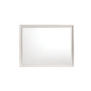 Simple sophistication is reflected in this rectangular dresser mirror, part of the Miranda Collection. An all white wooden frame provides a classic look sure to stand the tests of time. No dresser is complete without a matching mirror. Pair this mirror with the Miranda Seven-Drawer Dresser for a charming combination. Length: 41.0 Width: 1.25 Height: 36.5