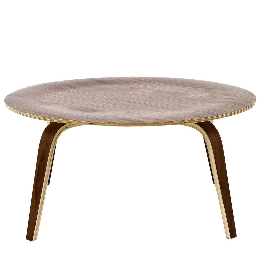 This classic table's top and legs are shaped by molding thin wood veneers under heat and pressure. The molded plywood coffee table features eight-ply legs and three hardwood inner plies sandwiched between your choice of four natural face veneers. Set Includes: One - Plywood Coffee Table Durable Molded Plywood Hardwood Center Sturdy Construction Overall Product Dimensions: 34"L x 34"W x 16"H