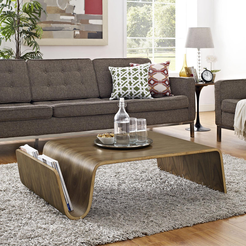 Light up your living room d�cor with the Polaris Coffee Table. Designed to embody the lightning-fast resolve of a modern home on the move, Polaris is made of a continuous bentwood sheet covered with a durable layer of walnut veneer. Complete with a magazine holder, this lightweight accent table works well either as a centerpiece to your modern living room or as a welcome accompaniment to your lounge space.