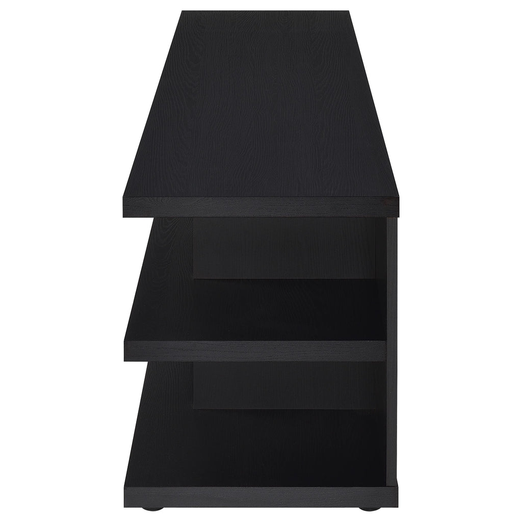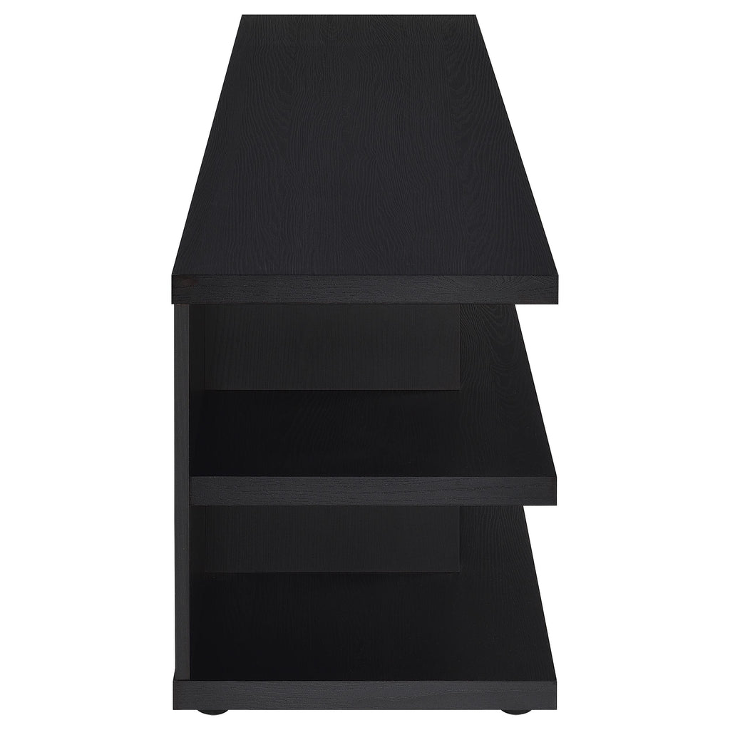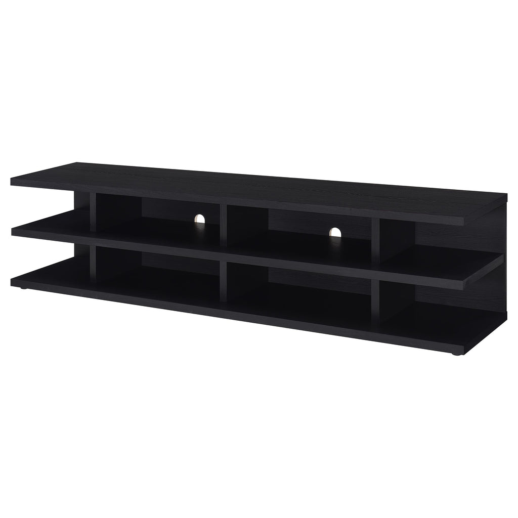 This expansive entertainment center transforms your living room, serving as a TV console, media console, and entertainment unit all in one sleek piece. Its 78-inch profile, engineered wood core, and scratch-resistant and eco-friendly laminate veneer ensure long-lasting elegance. A versatile media stand, media cabinet, and TV shelf, it delivers a perfect union of durability and style, establishing a functional focal point for home entertainment. Key Features: • Spacious TV stand accommodating 80-inch screens • Refined black finish with scratch-resistant and eco-friendly woodgrain look laminate veneer • Ample shelving for consoles, speakers, and décor • Convenient cable management for a clean, organized setup • Engineered wood construction ensures lasting stability • Complements modern living rooms with effortless style