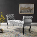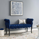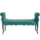 Celebrate whimsical charm and luxe opulence with the Adelia Chesterfield Style Performance Velvet Bench. A beautiful accent or extra seating solution, this entryway bench features deep button tufting, rolled armrests, delicate piping, and dense foam padding for a comfortable, supportive place to rest. This durable stain-resistant bench comes with rolled armrests, non-marking plastic foot caps, performance velvet polyester upholstery, and sits atop cabriole wood legs finished in wenge that elegantly complement the luxe texture. Adelia is a classic modern bench that makes a striking addition to your bedroom, living room, foyer, or any pass-through space. Bench Weight Capacity: 800 lbs.