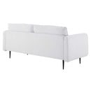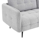 Heighten your living space with the Cameron Tufted Fabric Sofa. Displaying square tufting and French piping detail, this upholstered sofa is rich in contemporary charm and mid-century modern inspiration. Covered in soft polyester fabric, this tufted sofa features dense foam padding and a sinuous spring support system to create a premium seating experience for you and your guests. Sturdily constructed from solid wood, this fabric sofa sits atop black metal legs with non-marking foot pins. Modernizing the traditional furniture shopping experience, this sofa-in-a-box ships directly to your doorstep in a conveniently portable box with easy-to-follow instructions. This retro modern sofa is an ideal addition to your living room, lounge room, or home office. Assembly required. Sofa Weight Capacity: 900 lbs.