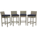 Refresh your alfresco space with the Conduit Outdoor Patio Bar Stool. Bringing transitional style with contemporary modern flair to any outdoor area, Conduit features a powder-coated aluminum frame wrapped in synthetic UV-resistant wicker rattan. Foam padded cushion and waterproof cover offer a comfortable seat while dining or entertaining. All-weather and long lasting, this versatile outdoor bar stool creates a serene setting for your morning tea, sunny lunch, sunset cocktail, and everything in between.