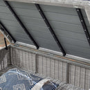 Enjoy fresh air and alfresco relaxation with the Conway Outdoor Patio Wicker Rattan Coffee Table. Wrapped in UV-resistant light gray synthetic wicker rattan, this patio table boasts organic texture and a neutral hue that brings a calming presence to your outdoor space. The frame of this outdoor coffee table is crafted with durable powder-coated aluminum and rests on L-shaped legs with plastic foot glides. A planked tabletop that replicates the texture of wood offers the perfect place to rest a drink or plate while entertaining. Trending aesthetics and a classic design define this outdoor patio furniture collection making it a beautiful addition to any outdoor space including the backyard, patio, porch, balcony, or poolside. Set Includes: One - Conway 45" Coffee Table Outdoor Patio Coffee Table Water and UV Resistant Light Gray Synthetic Rattan Powder-Coated Aluminum Frame Non-Marking Foot Glides Overall Product Dimensions: 31"L x 45"W x 15"H
