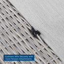 Enjoy fresh air and alfresco relaxation with the Conway Outdoor Patio Wicker Rattan Armchair. Wrapped in UV-resistant light gray synthetic wicker rattan, this patio chair boasts organic texture and a neutral hue that brings a calming presence to your outdoor space. The frame of this outdoor chair is crafted with durable powder-coated aluminum and rests on L-shaped legs with plastic foot glides. Thick foam padded cushions covered with washable water-resistant Sunbrella� fabric covers offer a comfortable seat and affix securely to the lounge chair with cord tension attachments. Trending aesthetics and a classic design define this outdoor patio furniture collection making it a beautiful addition to any outdoor space including the backyard, patio, porch, balcony, or poolside. Assembly required. Patio Chair Weight Capacity: 300 lbs.