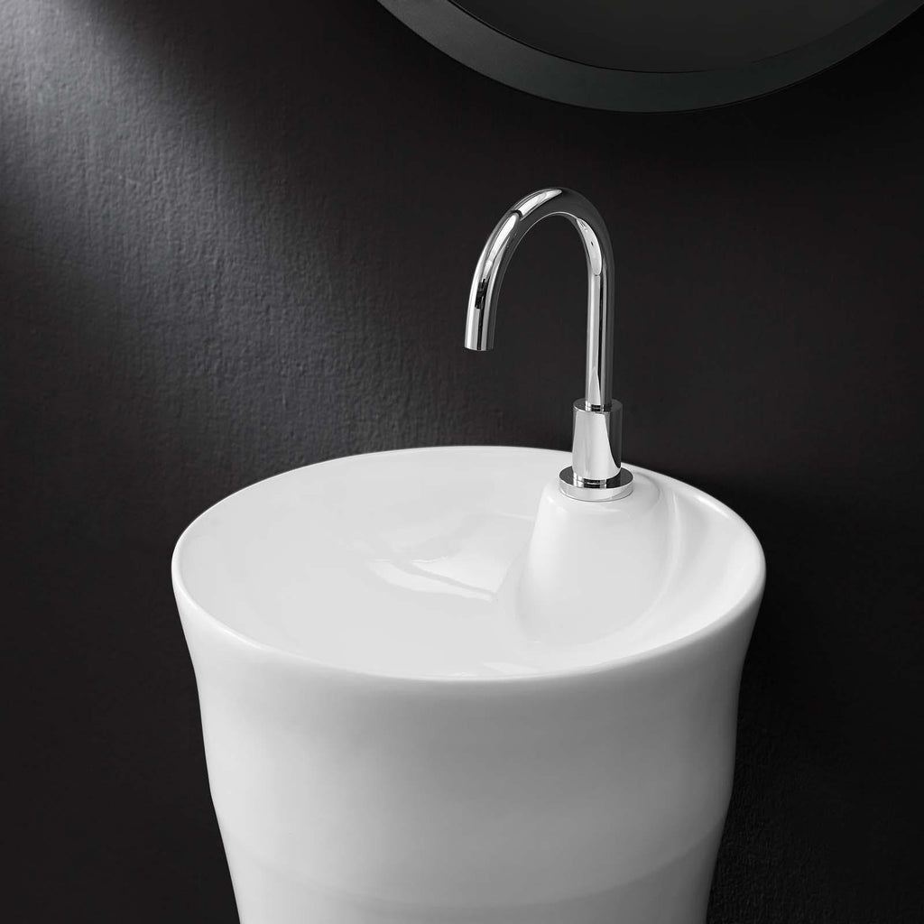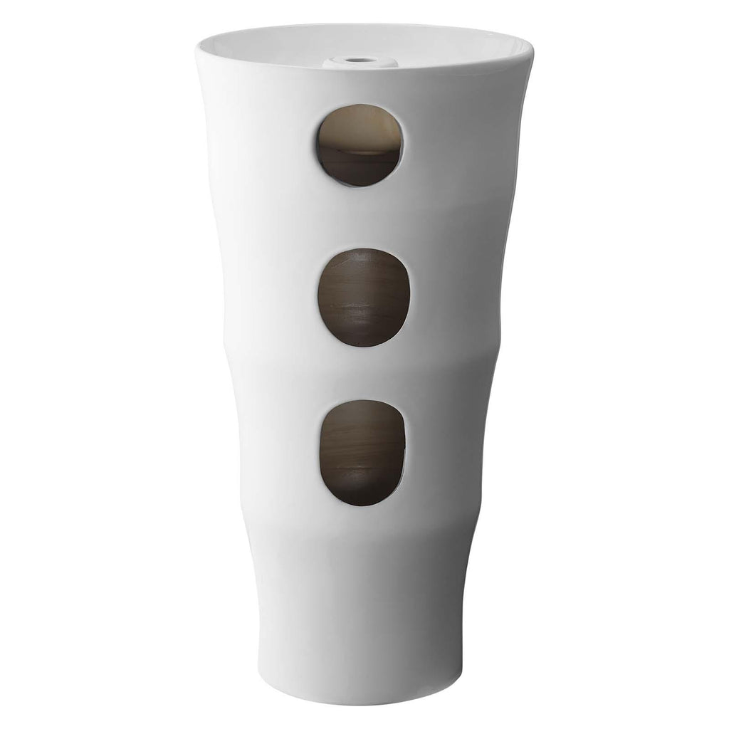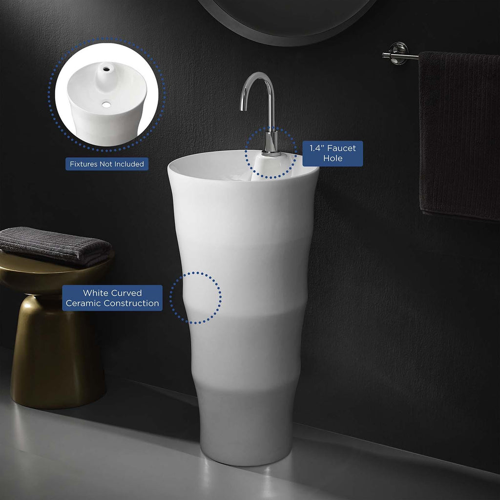 Wash up in style with the Grenada Pedestal Sink. A unique contemporary design, this bathroom sink features a ceramic construction in a ringed conical shape. With a circular basin and 1.4" faucet hole, this stand-alone sink is a beautiful addition to a guest bathroom, powder room, or half-bath. Fixtures not included.
