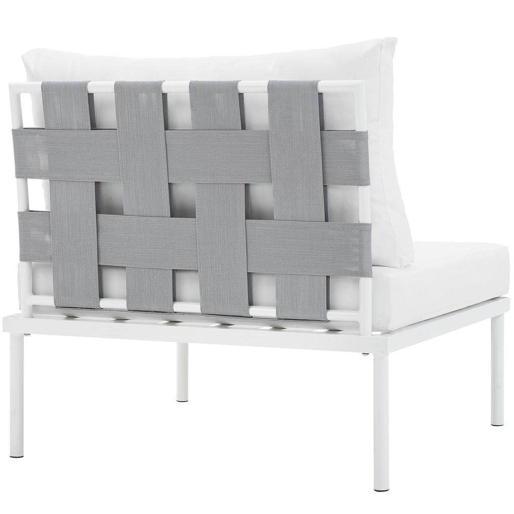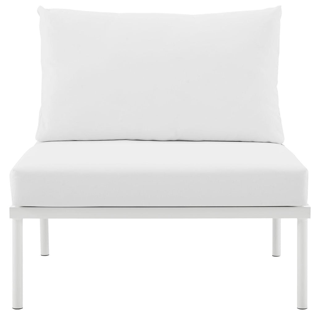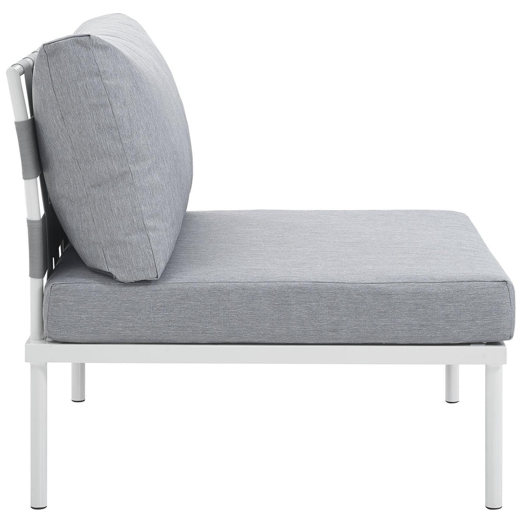 Engage life with Harmony Outdoor Patio Armless Sofa Chair. Enjoy casual conversation under the open sky with an all-weather waterproof outdoor chair from a versatile furniture set that delivers an exceptional outdoor porch, patio, balcony or garden experience. An exceptional modern outdoor furniture set that exceeds expectations, Harmony Patio Armless Sofa Chair comes with silk polyester seat back weave, square powder coated aluminum bases, and non-marking foot caps. An outside deck chair that arranges according to the spontaneous needs of your guests, set your sights on open and inspired moments with the Harmony Outdoor Patio Collection.