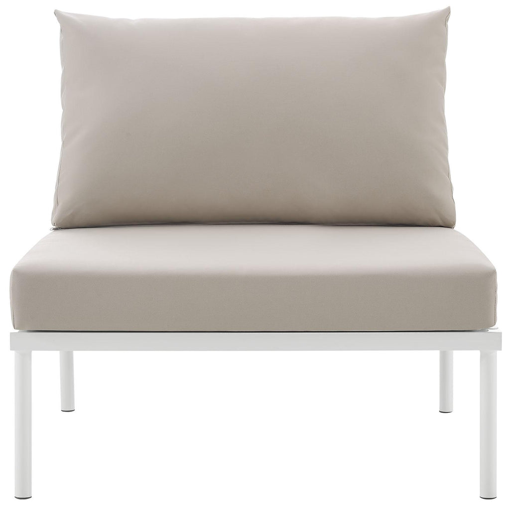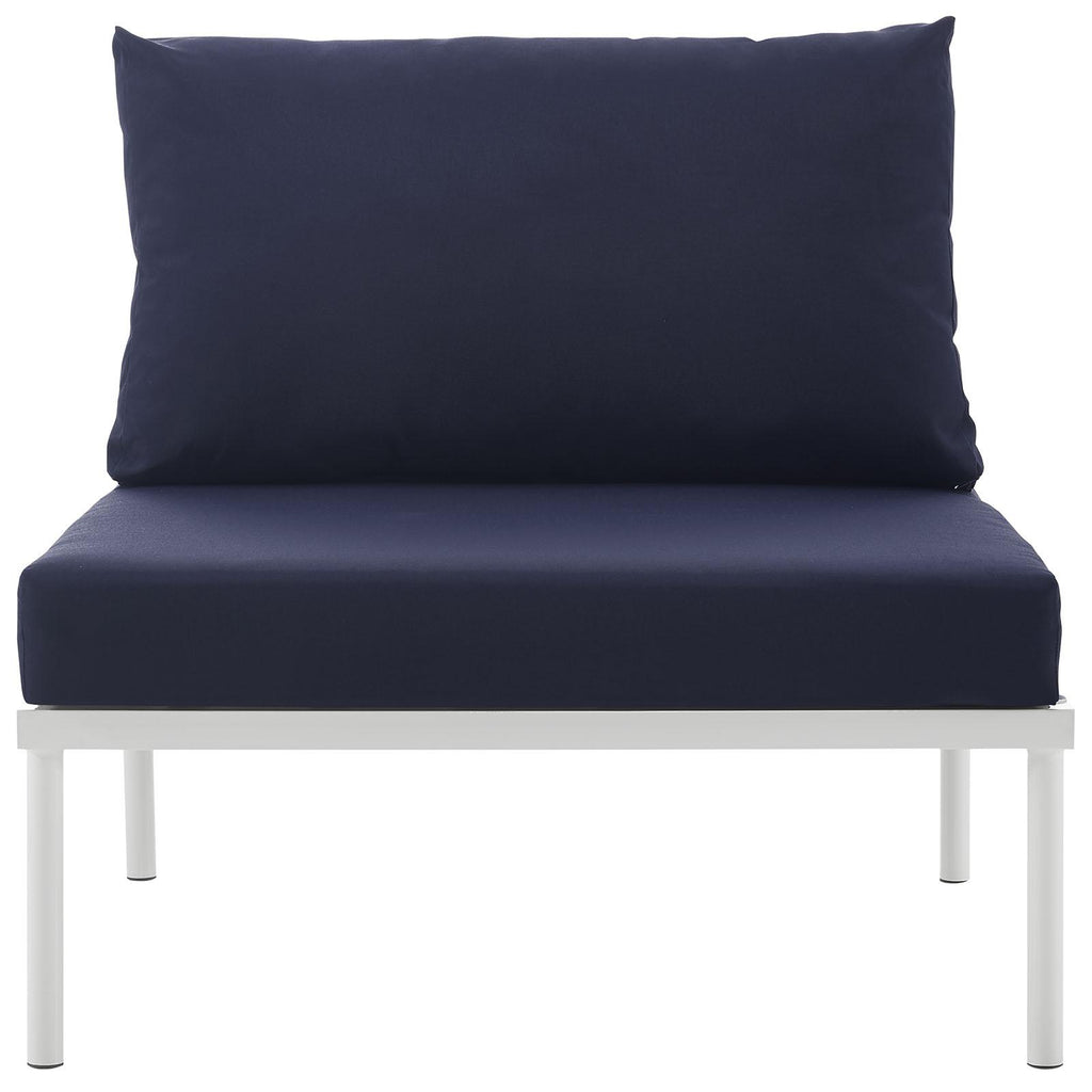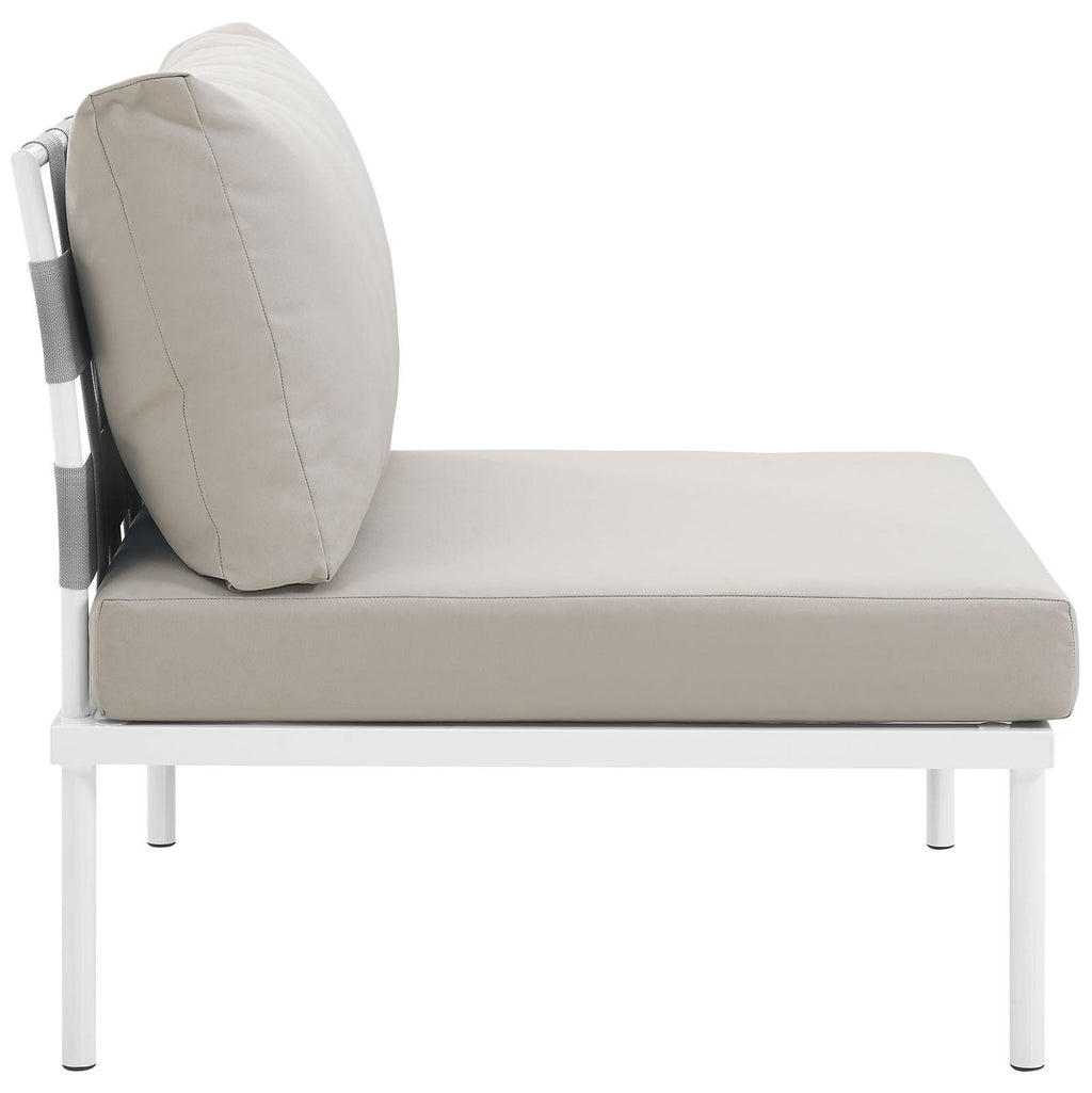 Engage life with Harmony Outdoor Patio Armless Sofa Chair. Enjoy casual conversation under the open sky with an all-weather waterproof outdoor chair from a versatile furniture set that delivers an exceptional outdoor porch, patio, balcony or garden experience. An exceptional modern outdoor furniture set that exceeds expectations, Harmony Patio Armless Sofa Chair comes with silk polyester seat back weave, square powder coated aluminum bases, and non-marking foot caps. An outside deck chair that arranges according to the spontaneous needs of your guests, set your sights on open and inspired moments with the Harmony Outdoor Patio Collection.