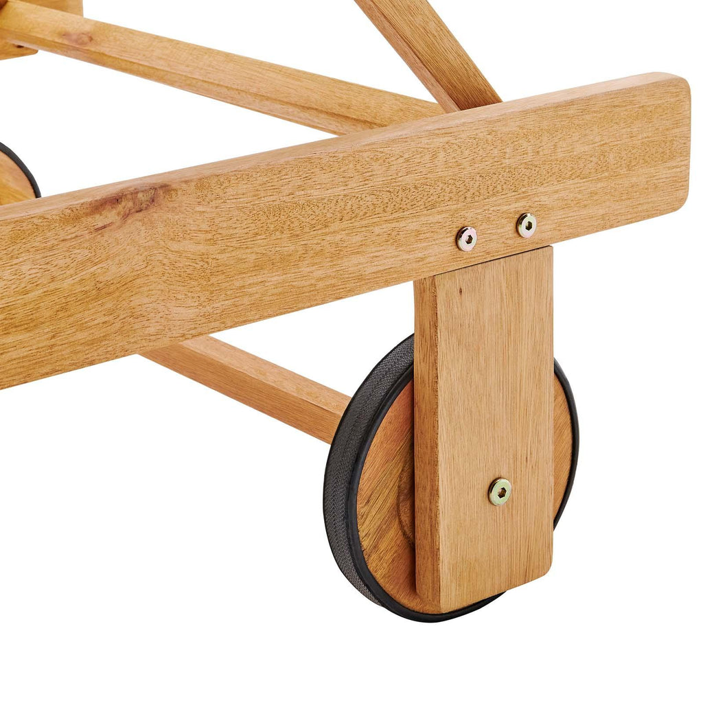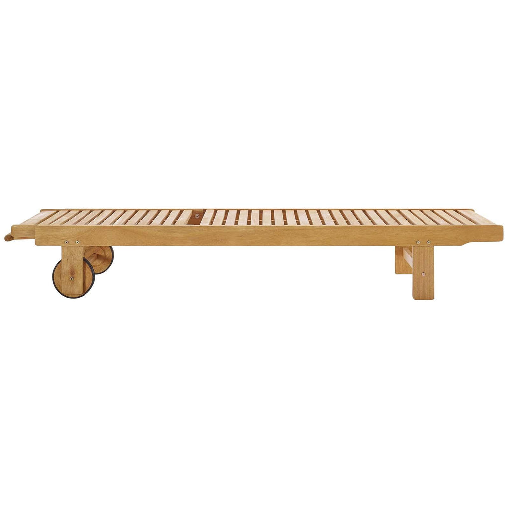 Reinvent the elegance of minimalism with the Hatteras Outdoor Patio Wood Chaise Lounge Chair. Hatteras has a refreshing back to basics feel that elevates your patio decor to new heights. Solidly constructed from FSC certified eucalyptus wood, the wood slats give this sturdy chaise lounge chair create natural airflow for comfortable lounging. The Hatteras Patio Lounge Chair has two forward-backward rolling wheels, and five back recline settings, for a customizable angle and position suited for enjoyable leisure time spent at the patio, poolside, porch, backyard, or deck. Lounge Chair Weight Capacity: 331 lbs.