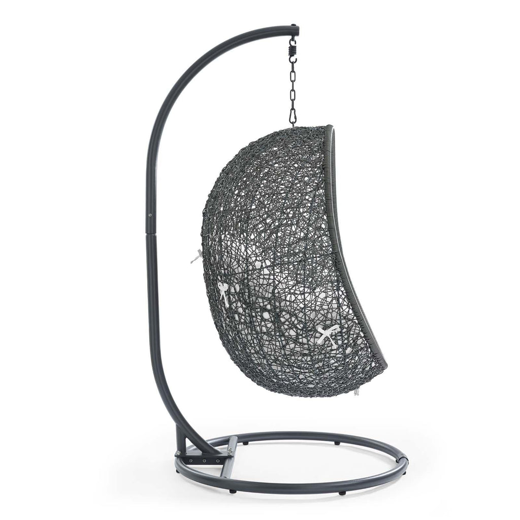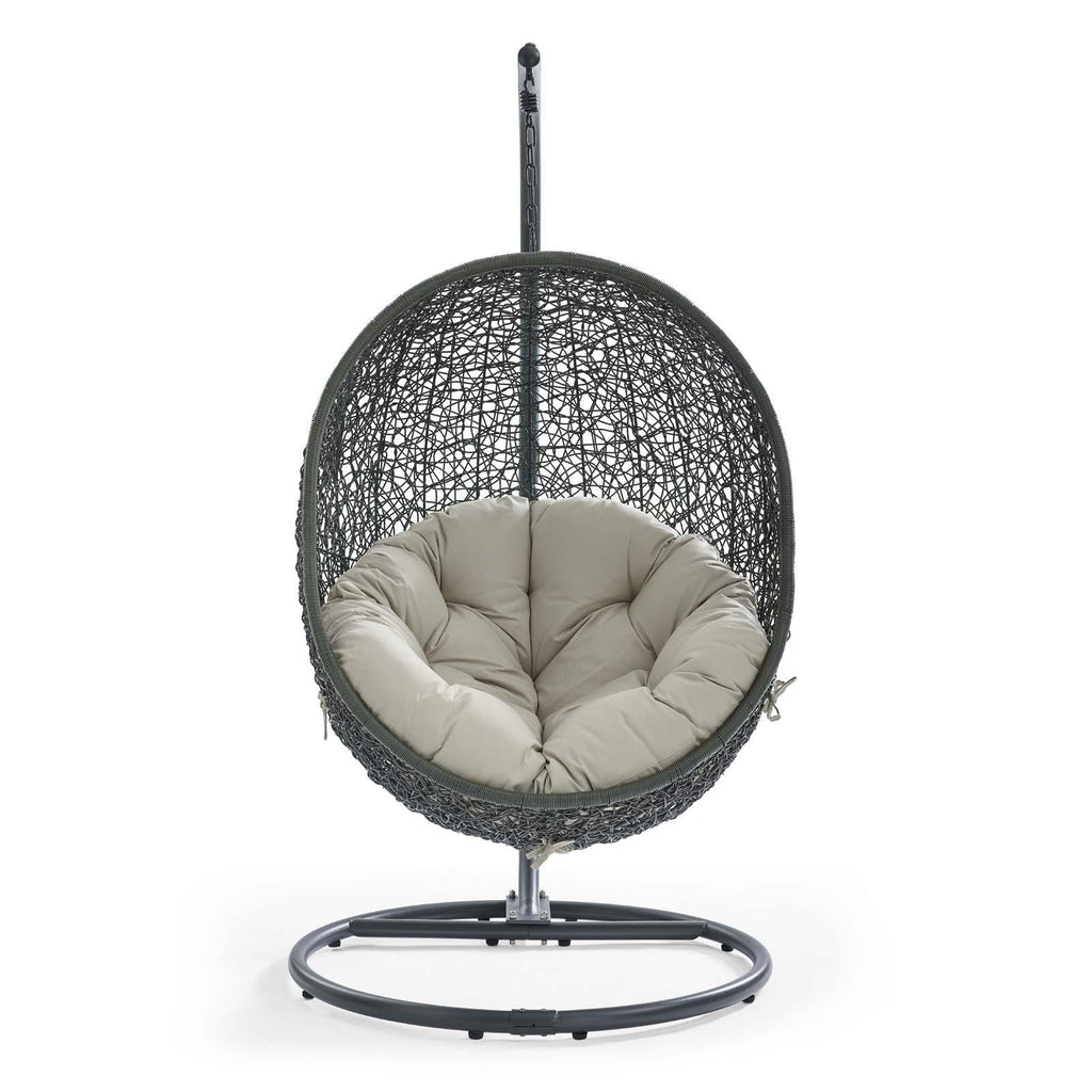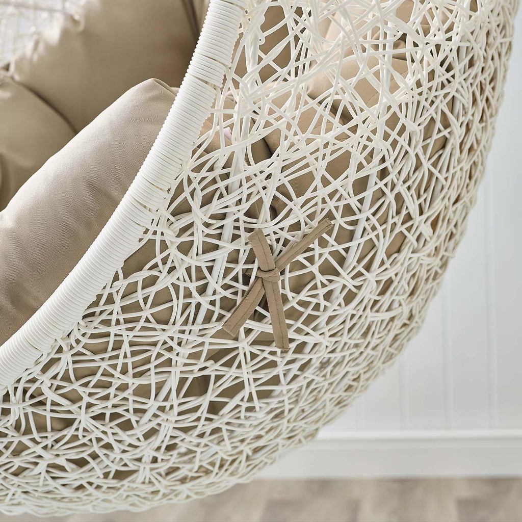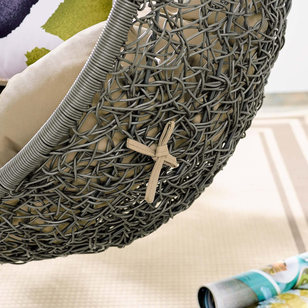 Escape to an exotic island of serenity with the Hide Outdoor Patio Swing Chair. Made with a luxurious synthetic rattan weave and plush all-weather fabric cushion, Hide Outdoor Hanging Chair makes it easy to immerse yourself in a good book. Hide Patio Swing Chair comes with a sturdy powder-coated steel frame and hanging chain apparatus that works well to enliven your patio, backyard, porch, or poolside d�cor. Stand-alone swing chairs are also popularly used in indoor lounge, living, or bedroom spaces. Hide Hanging Swing Chair is weather and UV resistant.