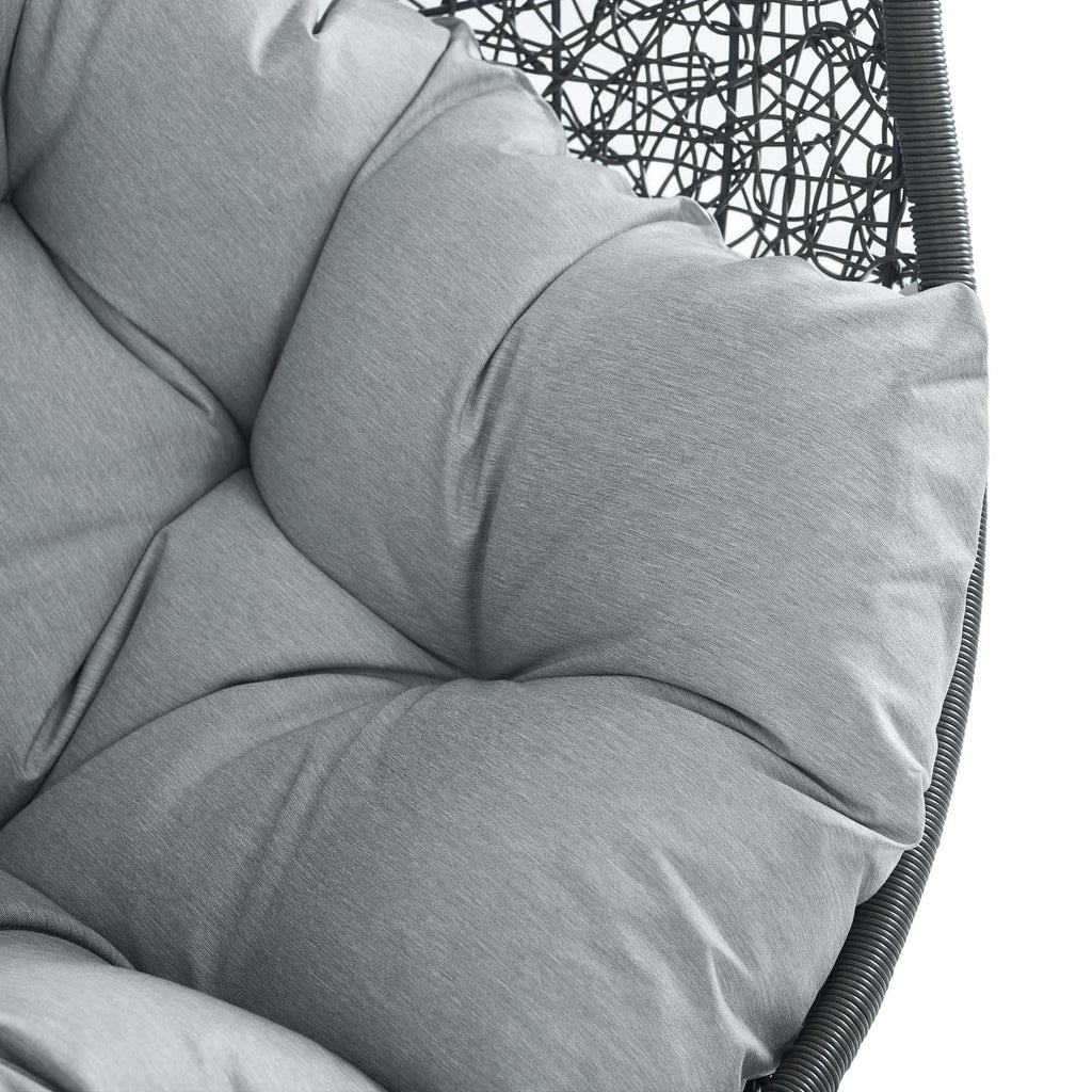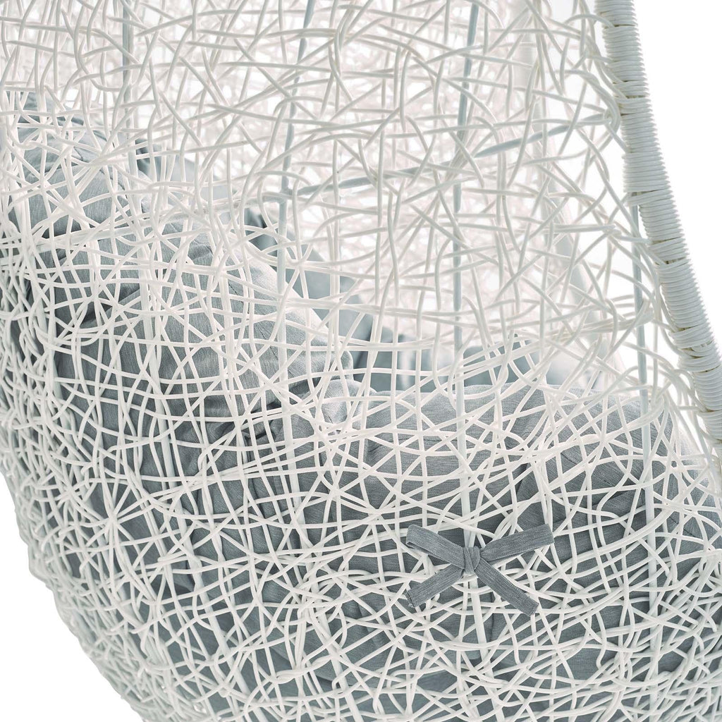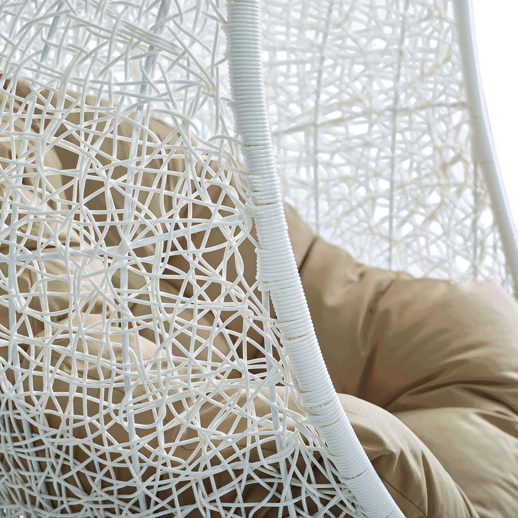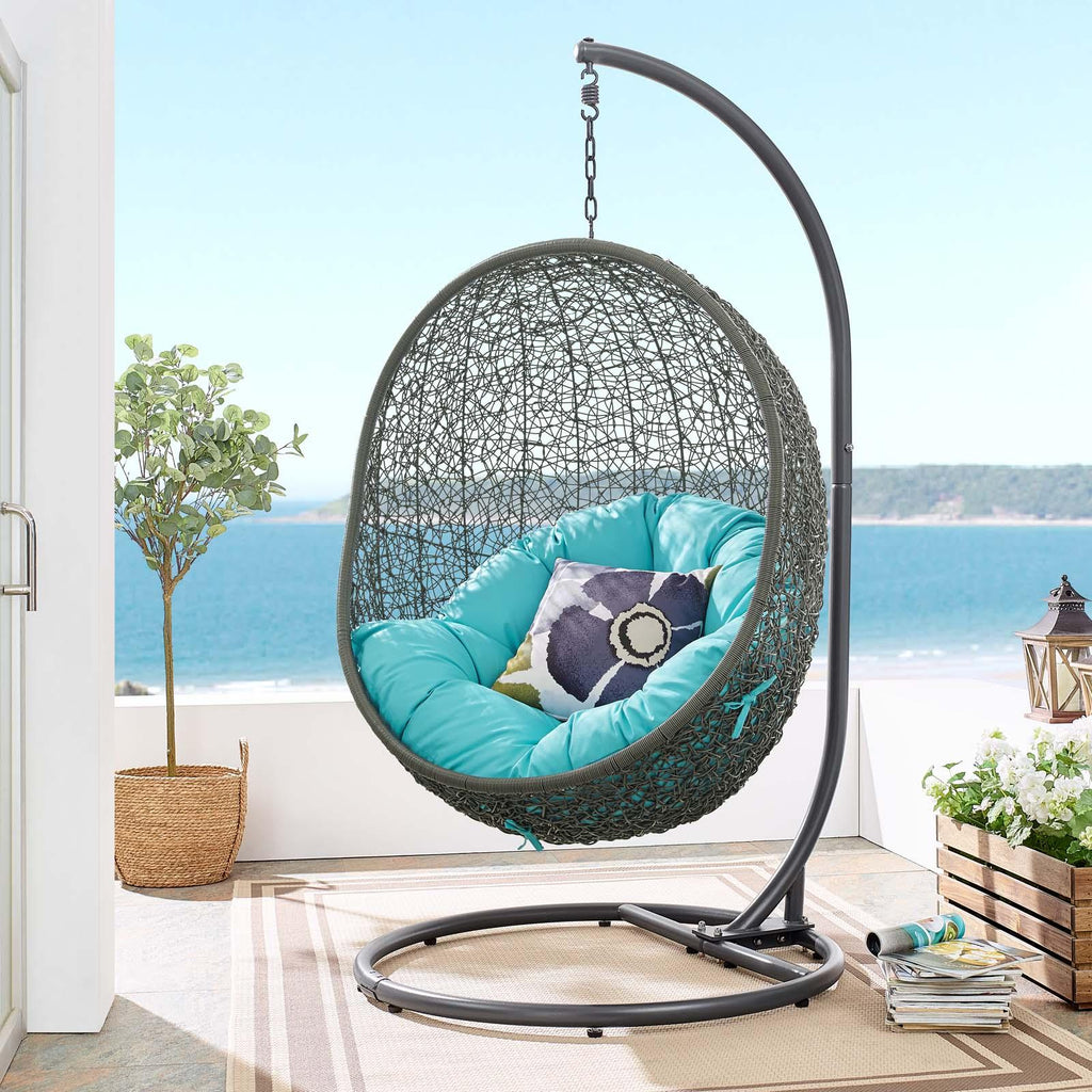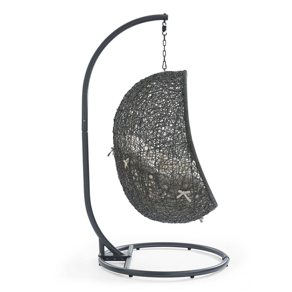 Escape to an exotic island of serenity with the Hide Outdoor Patio Swing Chair. Made with a luxurious synthetic rattan weave and plush all-weather fabric cushion, Hide Outdoor Hanging Chair makes it easy to immerse yourself in a good book. Hide Patio Swing Chair comes with a sturdy powder-coated steel frame and hanging chain apparatus that works well to enliven your patio, backyard, porch, or poolside d�cor. Stand-alone swing chairs are also popularly used in indoor lounge, living, or bedroom spaces. Hide Hanging Swing Chair is weather and UV resistant.