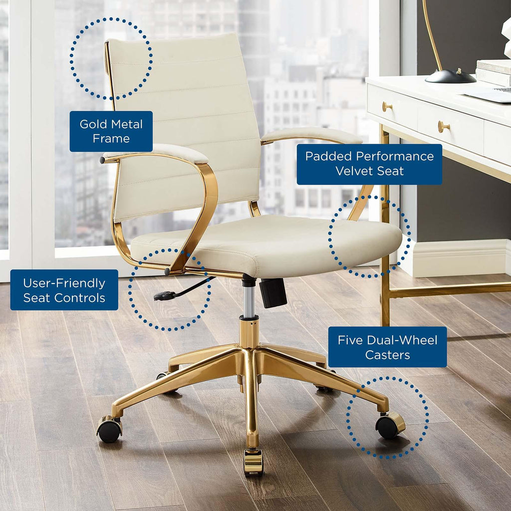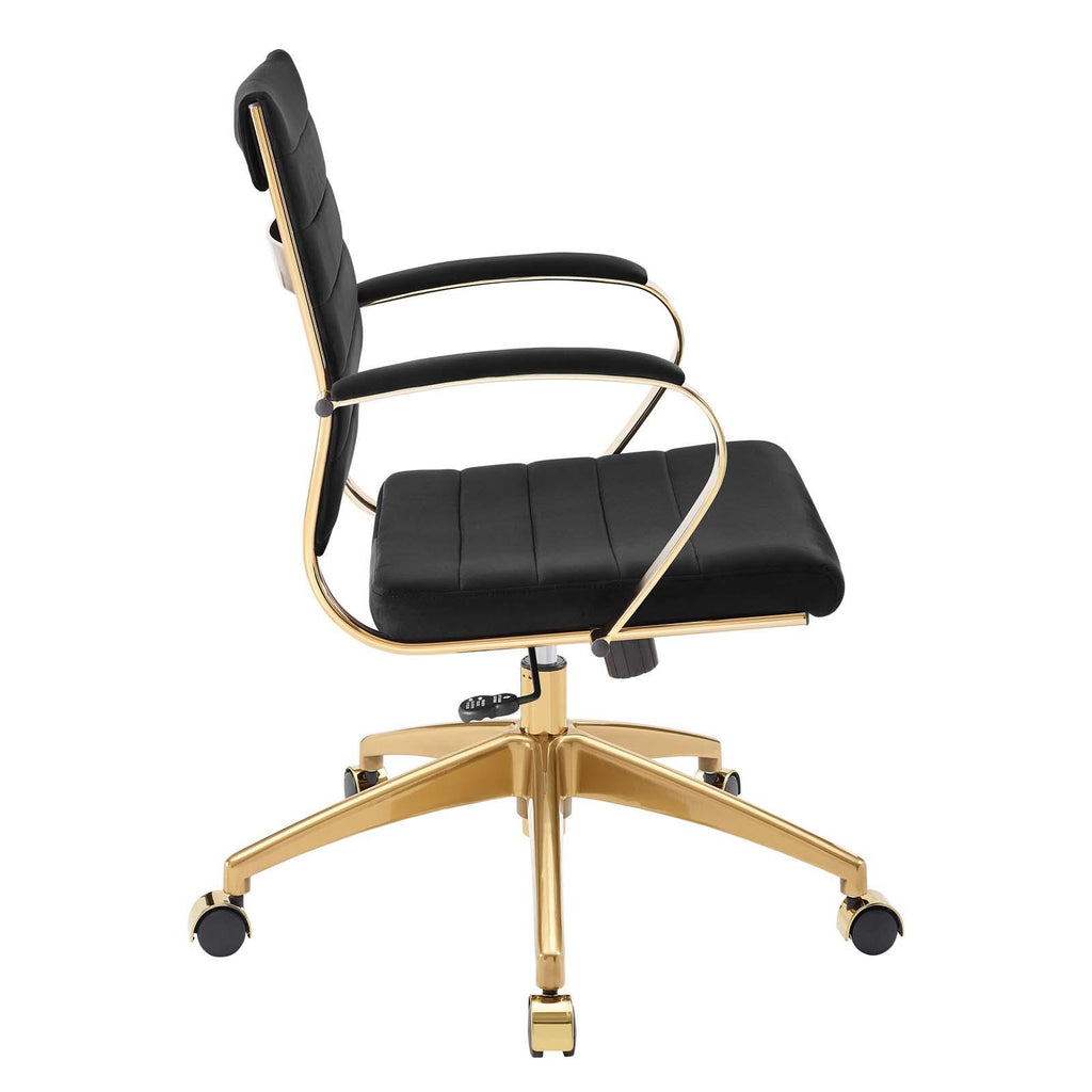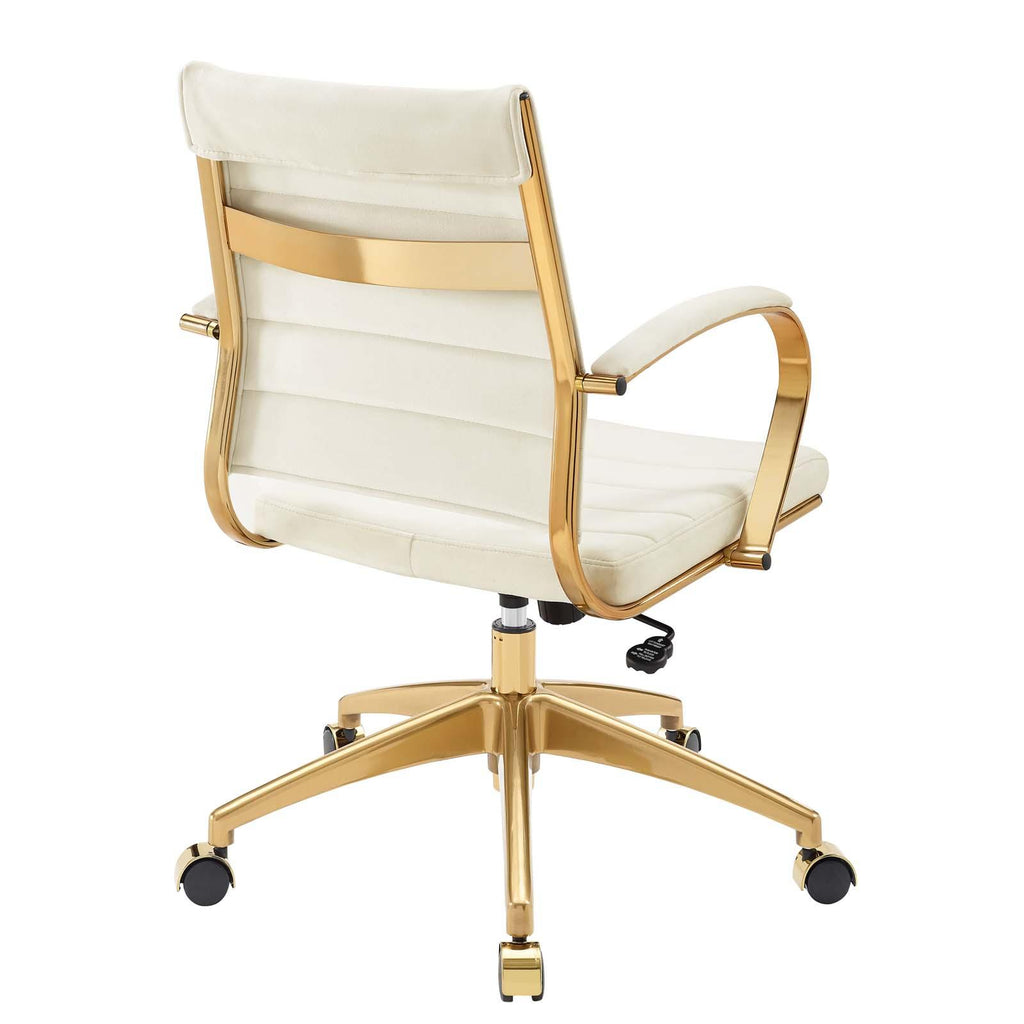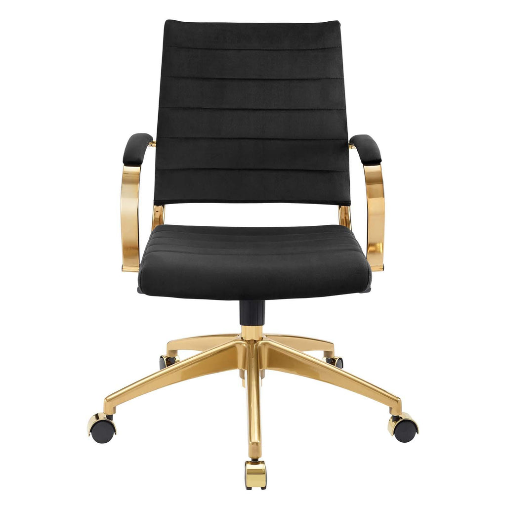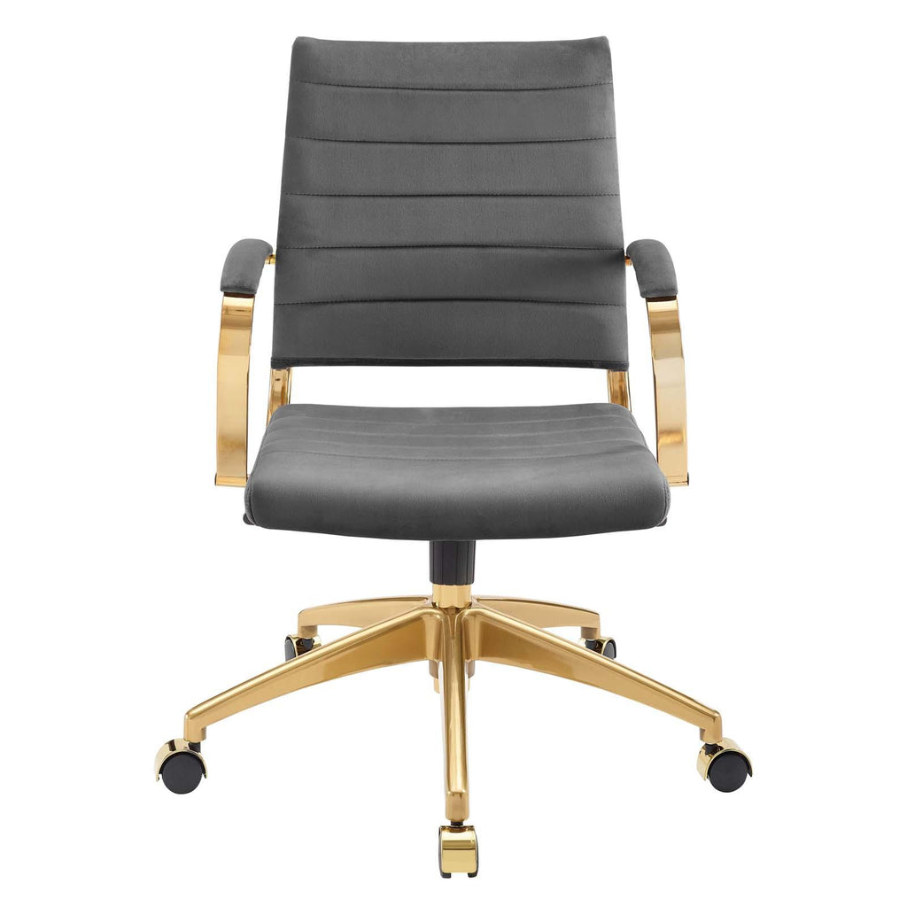 Steer the course and sail to an island called style. Jive is the result of chair makers who decided to design a chair that just works. Functionally, it is a pleasure to sit in as the durable ribbed velvet back provides natural posture support. The seat cushion is padded and upholstered in stain-resistant performance velvet, and the form of the padded armrests was intended to maximize a 90-degree wrist angling for typing. Jive�s chrome-plated aluminum base is fitted with five dual-wheel casters, while a tension knob and tilt lock allow for easy back position adjustments. This is a chair made for the modern office and a welcome embodiment of the spirit of progress and determination.