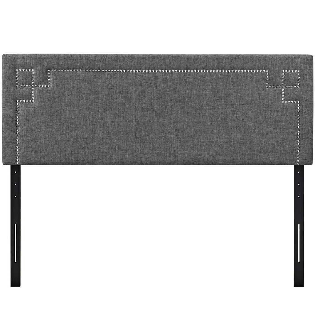 Enhance d�cor with the elegant Modway Josie Linen Fabric Upholstered Full Headboard. Fashioned with diamond-patterned silver accent nail buttons, Josie Full Headboard features a solid wood frame, adjustable wood legs, soft linen fabric upholstery and dense foam padding for ultimate support. Designed to delight, Josie is a glamorous headboard for full beds that complements traditional, contemporary and modern bedrooms admirably. Set Includes: One - Josie Full Headboard Fine Polyester Upholstery Silver Accent Copper Buttons Solid Wood Frame Particleboard Panel Dense Foam Padding Mounts in Four Locations Assembly Required Overall Product Dimensions: 3"L x 57.5"W x 40"H Headboard Dimensions: 3"L x 57.5"W x 22.5"H Floor to Bottom of Headboard: 17.5"H