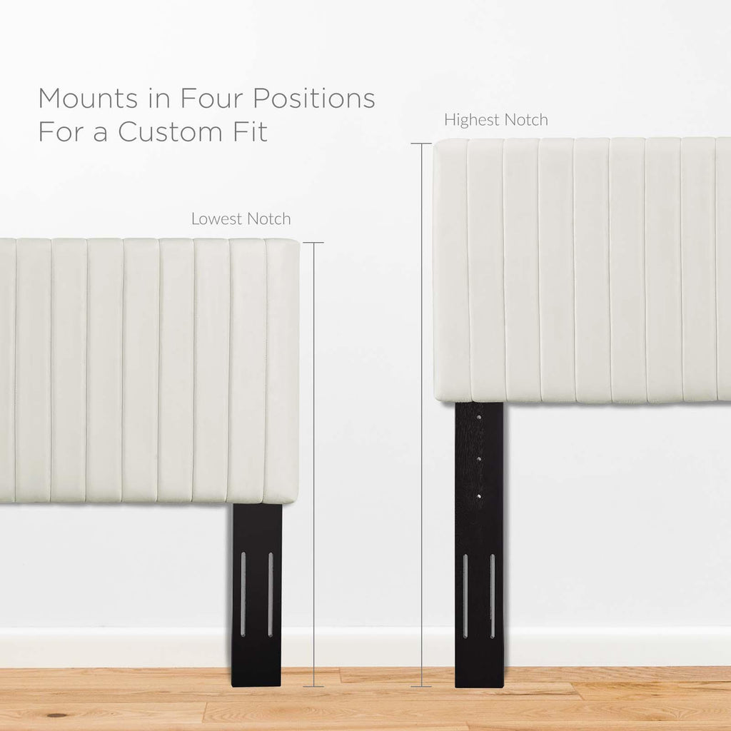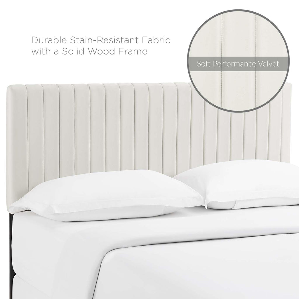 Refresh your master bedroom or guest suite with the Keira Full/Queen Headboard. This elegant queen headboard makes a luxe statement with its channel tufting, velvet texture, and chic squared profile. Boasting a modern design with timeless appeal, this upholstered headboard is covered in soft performance velvet made of stain-resistant polyester and features a solid wood and particleboard construction that�s durable and long-lasting. Lean back and relax while reading or watching TV in bed with the dense foam padding on this upholstered queen headboard. Fits queen and full size beds.
