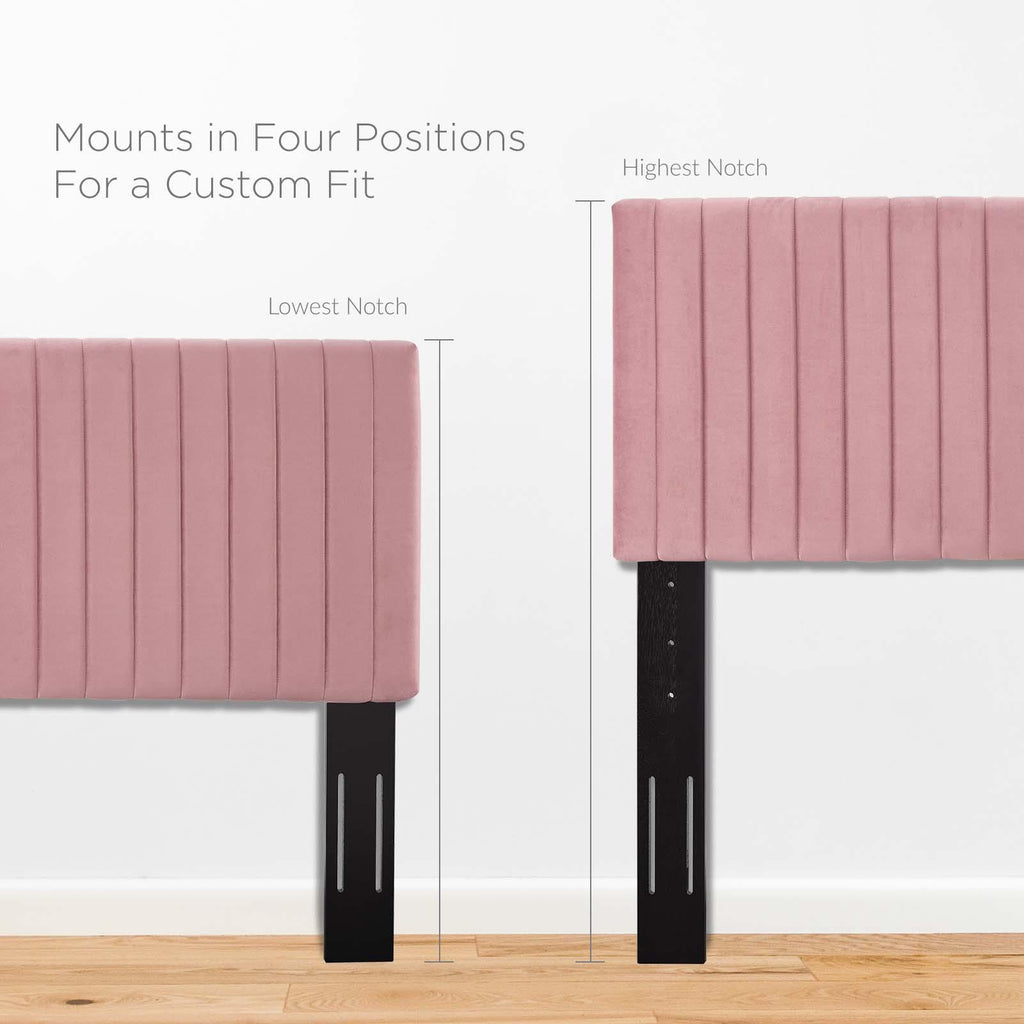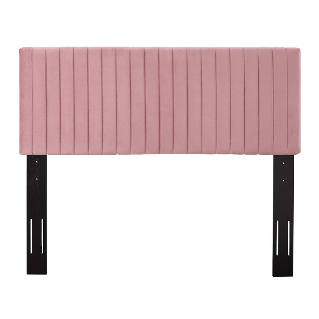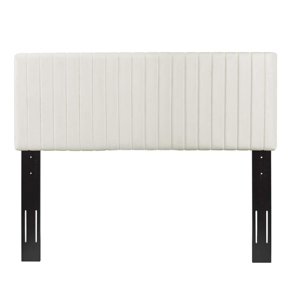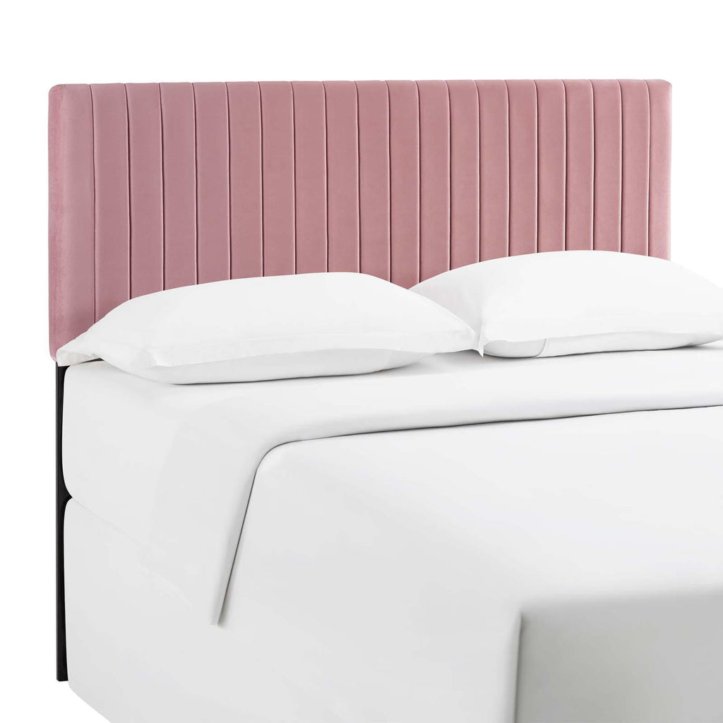 Refresh your master bedroom with the Keira King/California King Headboard. This elegant king headboard makes a luxe statement with its channel tufting, velvet texture, and chic squared profile. Boasting a modern design with timeless appeal, this upholstered headboard is covered in soft performance velvet made of stain-resistant polyester and features a solid wood and particleboard construction that�s durable and long-lasting. Lean back and relax while reading or watching TV in bed with the dense foam padding on this upholstered king headboard. Fits king and California king size beds.