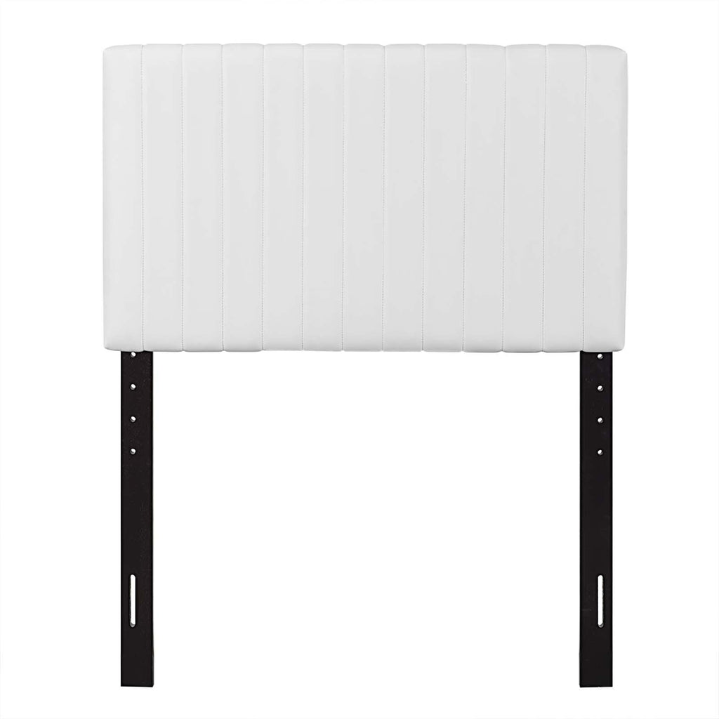 Refresh a kid's bedroom or college dorm with the Keira Twin Headboard. This elegant twin headboard makes a luxe statement with its channel tufting, smooth texture, and chic squared profile. Boasting a modern design with timeless appeal, this upholstered headboard is covered in luxurious faux leather and features a solid wood and particleboard construction that�s durable and long-lasting. Lean back and relax while reading or watching TV in bed with the dense foam padding on this upholstered twin headboard. Fits twin size beds.