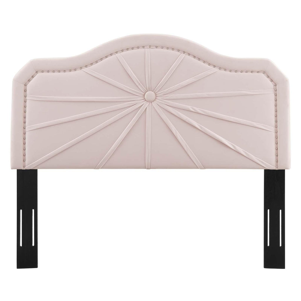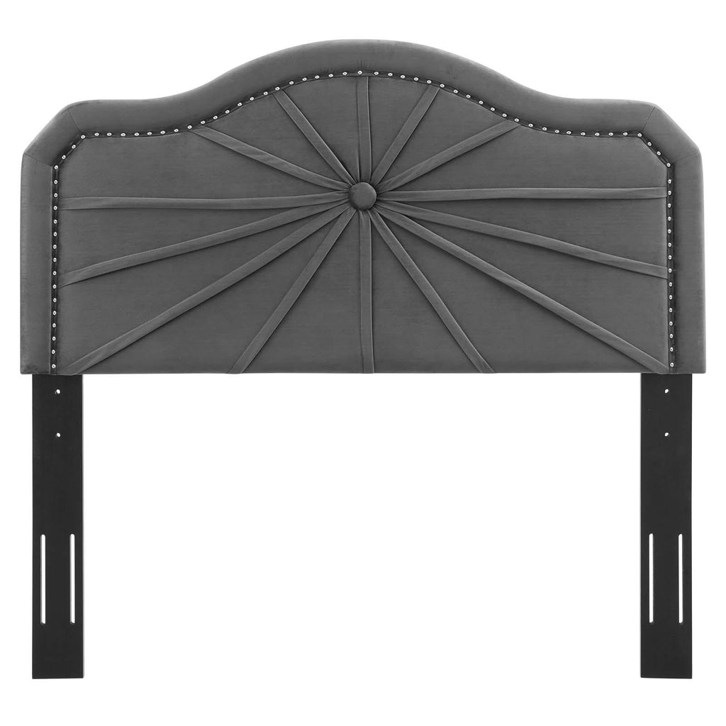 Infuse a kid's bedroom, guest room, or college dorm with the vintage modern elegance and glam deco style of the Kristin Performance Velvet Twin Headboard. Featuring luxe velvet texture, an arched shape, nailhead trim, and a pleated design, this twin size headboard is a beautiful update. Upholstered in soft, stain-resistant performance velvet, this padded headboard offers supportive comfort while sitting up in bed resting, relaxing, reading, or watching TV. A beautiful backdrop for a variety of bedding styles, this adjustable headboard fits almost any twin bed with its three mounting positions. Assembly required. Set Includes: One - Kristin Pleated Twin Headboard Pleated Twin Headboard Performance Velvet Upholstery Durable Stain-Resistant Fabric Nailhead Trim Dense Foam Padding 3 Mounting Positions Assembly Required Overall Product Dimensions: 3"L x 39"W x 30.5"H Headboard Dimensions: 3"L x 39"W x 30.5"H Floor to Top of Headboard: 61"H Floor to Bottom of Headboard: 30.5"H