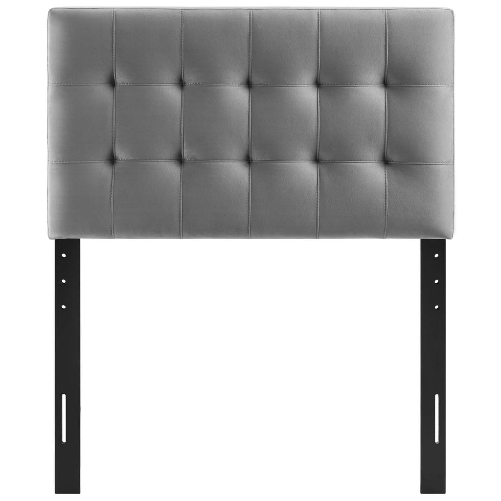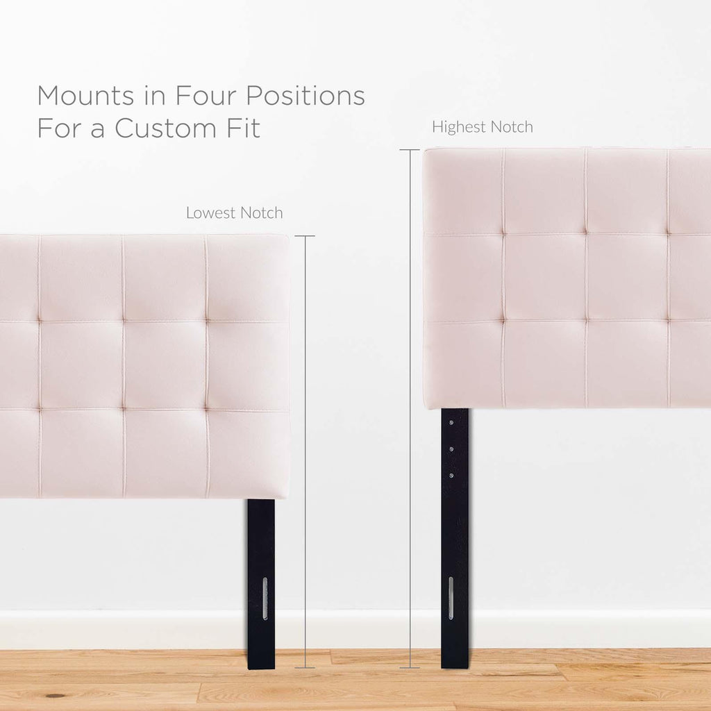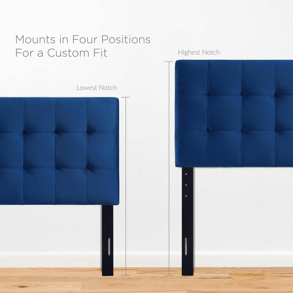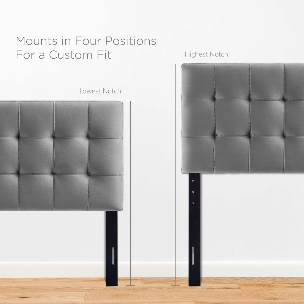 Instill classic elegance and modern luxury with the Lily Biscuit Tufted Performance Velvet Twin Headboard. Lily features charming biscuit tufting for plush vintage glamour and timeless appeal. An elegant centerpiece to a kid's bedroom, guest room, or dorm, this upholstered velvet headboard for twin bed frames provides a soft, stain-resistant update for premium comfort while relaxing, reading, or conversing in bed. Solidly constructed from plywood and fiberboard with dense foam padding, this twin size velvet headboard comes with five mounting positions that are height adjustable from 45" - 52.5".