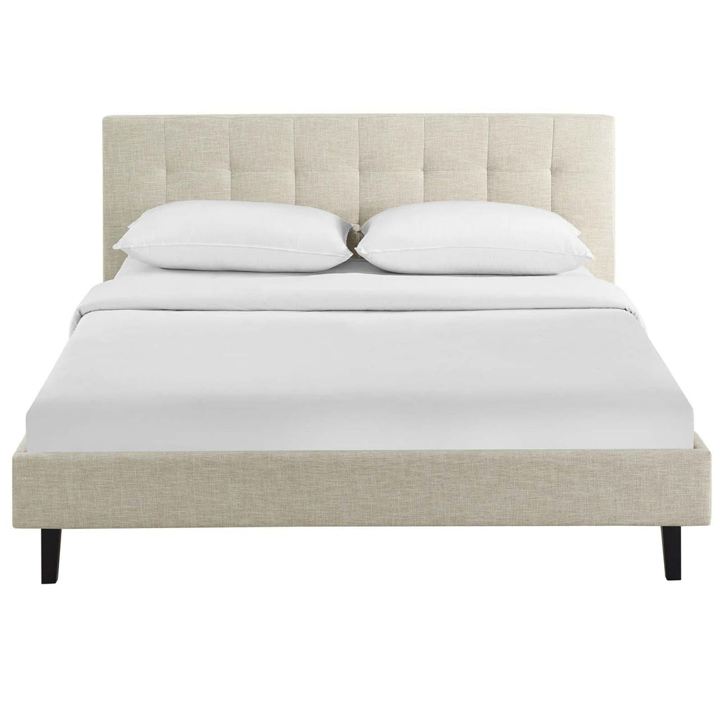 Inspire sweet dreams with the Linnea Platform Bed. Charmingly designed with grace and distinction, Linnea comes with an upholstered polyester fabric base and tufted headboard, solid wood legs, and a slatted wood support system that eliminates the need for a box spring. Complete with a reinforced center beam with supporting legs for maximal stability, Linnea accommodates the various mattress types on the market such as memory foam, spring, latex, and hybrid. Imparting a heartening chic-luxe look, Linnea is a well-made bed perfect for the instant update or bedroom transformation. Weight capacity up to 1300 lbs. Mattress Not Included. Set Includes: One - Linnea Full Bed Frame Platform Bed Frame With Headboard Slatted Poplar Wood Support System Upholstered Polyester Plywood Base Tufted Polyester Headboard Non-Marking Foot Caps Weight Capacity Up To 1300 lbs Assembly Required Overall Product Dimensions: 81"L x 60"W x 36.5"H Headboard Dimensions: 60"L x 36.5"W x 3"H Footboard Dimensions: 7"L x 2"W x 57"H Distance Between Slats: 3.7"W