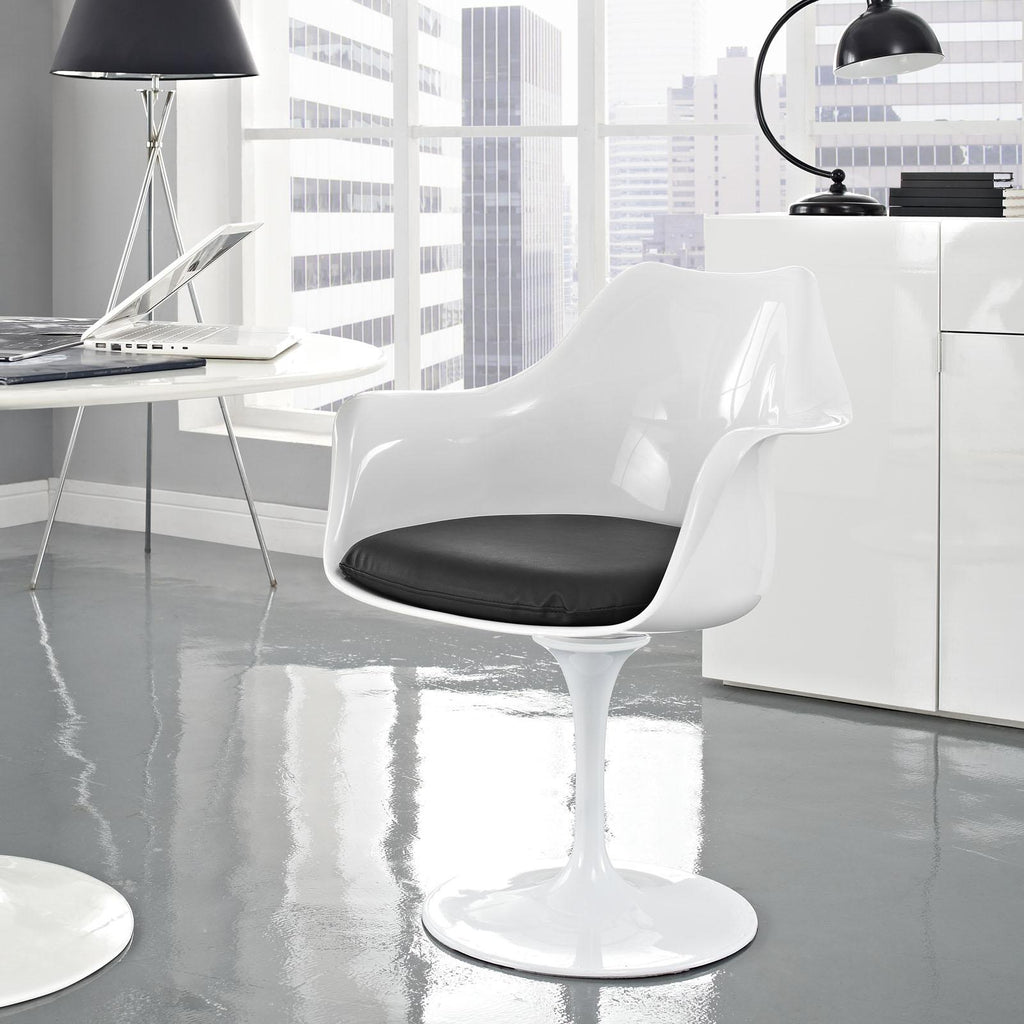 The Lippa Armchair adds the perfect modern classic touch to any dining space. Sturdy, easy to clean, and lovely to behold, these chairs elevate a meal to whole new levels of enjoyment. Available in an array of colors, the Lippa Chair makes it easy to express your individual style. Set Includes: One - Lippa Vinyl Dining Armchair ABS Plastic Seat Aluminum Base Vinyl Cushions Assembly Required Chair Swivels 360� Overall Product Dimensions: 23.5"L x 27"W x 33.5"H Seat Dimensions: 18.5"L x 19"W x 21"H Armrest Height: 26.5"H