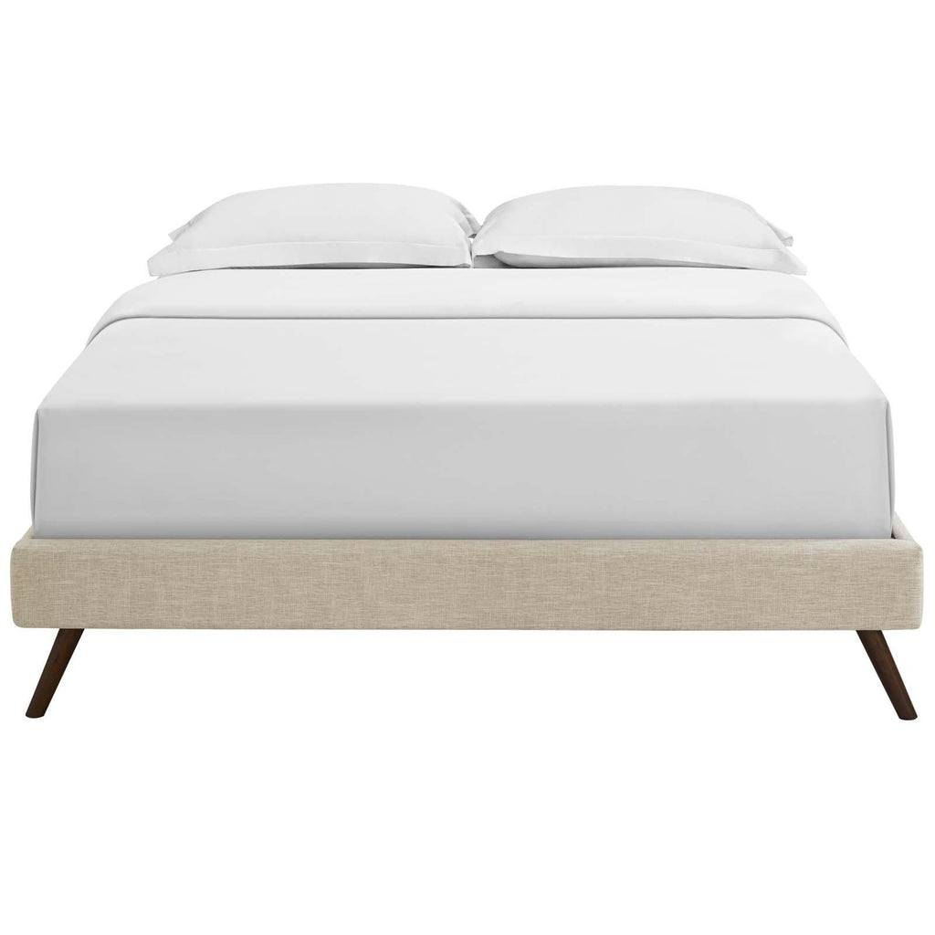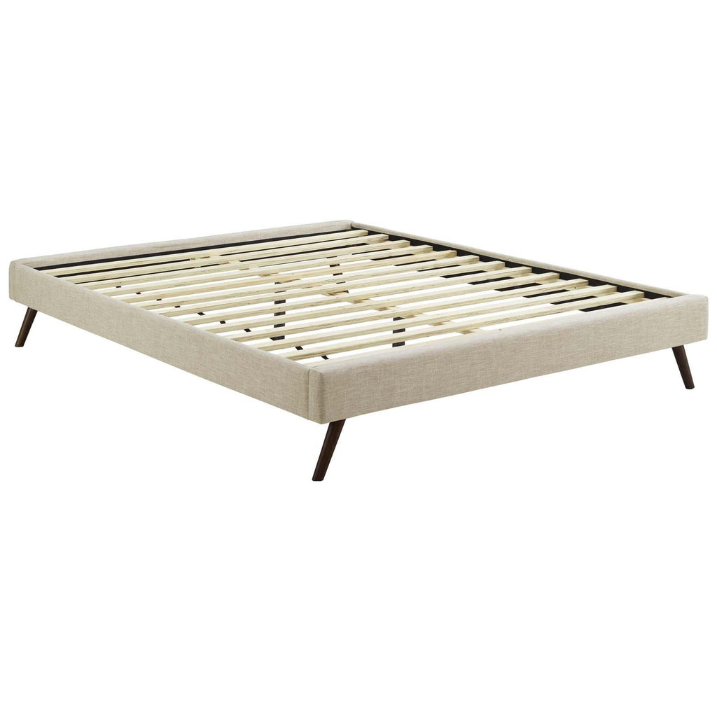 Accelerate your bedroom decor with the Loryn Platform Bed. Made with a solid wood frame upholstered in polyester fabric, Loryn features tapered wood legs, plastic foot glides, ten sturdy wood slats with a centered supporting bar and two support legs for enhanced stability. Due to the wooden slat support system, the use of a box spring is unnecessary. Loryn supports memory foam mattresses such as our Aveline series, and is compatible with one of our headboard styles: Jessamine, Terisa, Laura, Phoebe, Camille, and Josie. Perfect for mid-century modern, minimalist and contemporary bedrooms. Mattress not included.