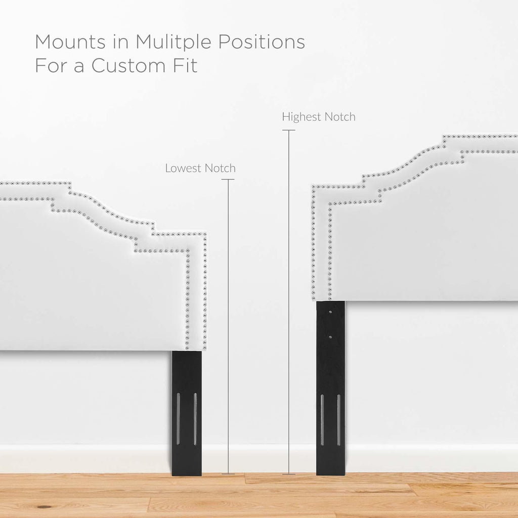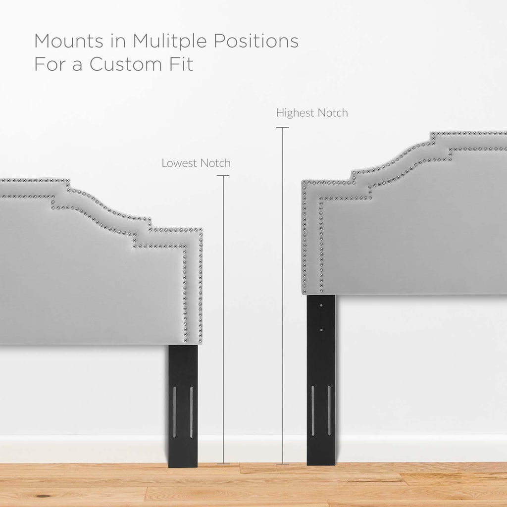 Influence glam deco style in a college dorm, guest suite, or kid's bedroom with the Lucia Performance Velvet Twin Headboard. Featuring a double trim of nailheads and a unique arched shape, this velvet headboard brings tactile luxury to the bedroom. Covered in soft, stain-resistant performance velvet, this twin size headboard is padded in dense foam offering a supportive place to rest while sitting up in bed. A backdrop for a variety of bedding and sham styles, this height-adjustable headboard fits twin size bed frames with its three mounting positions. Assembly required.