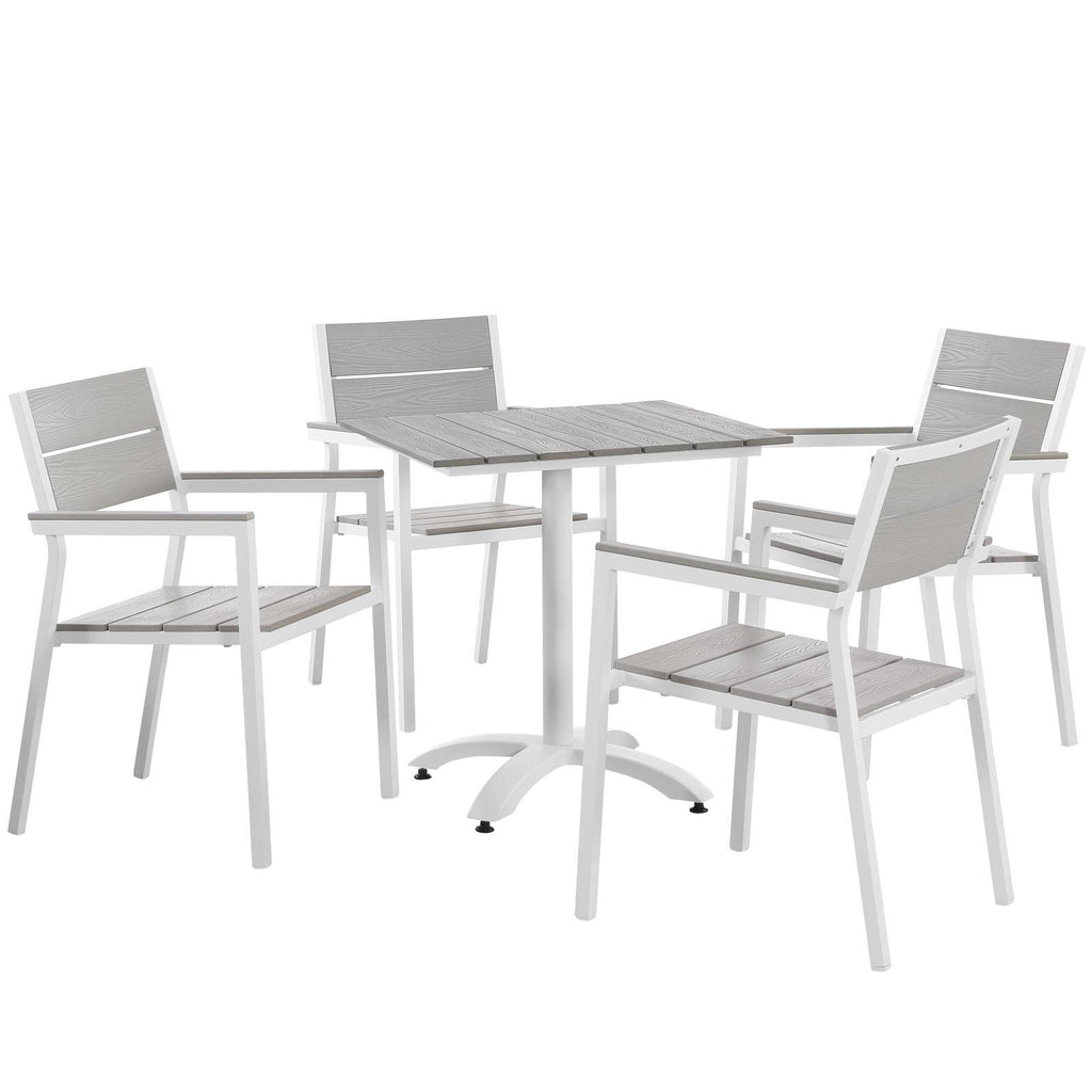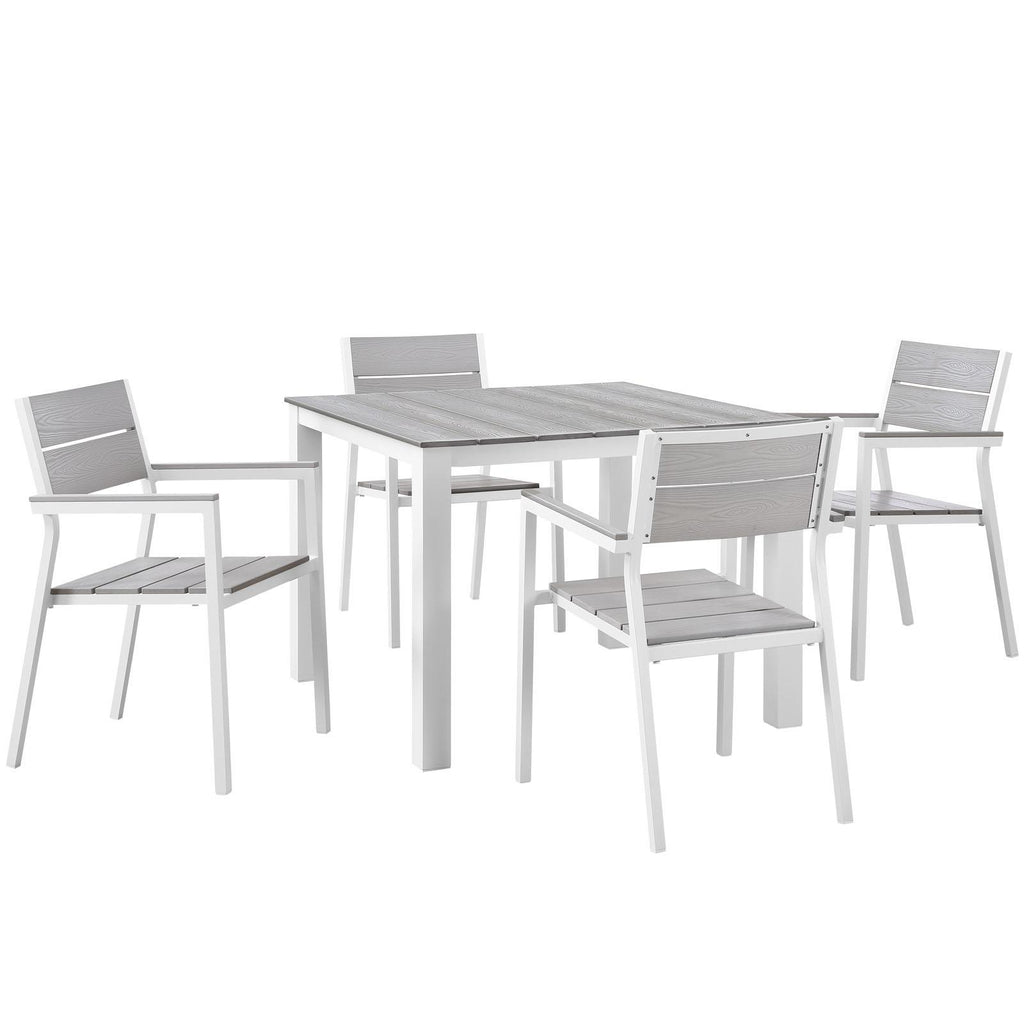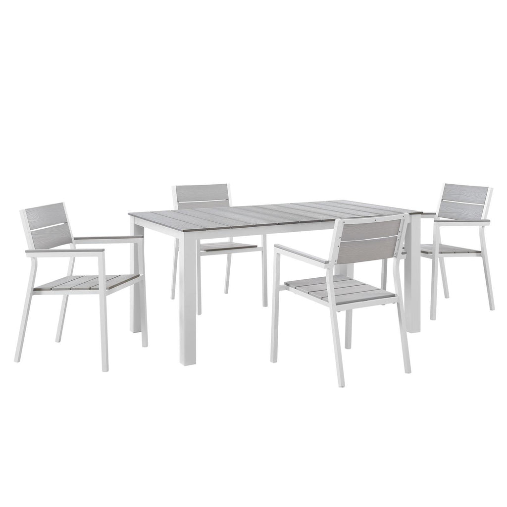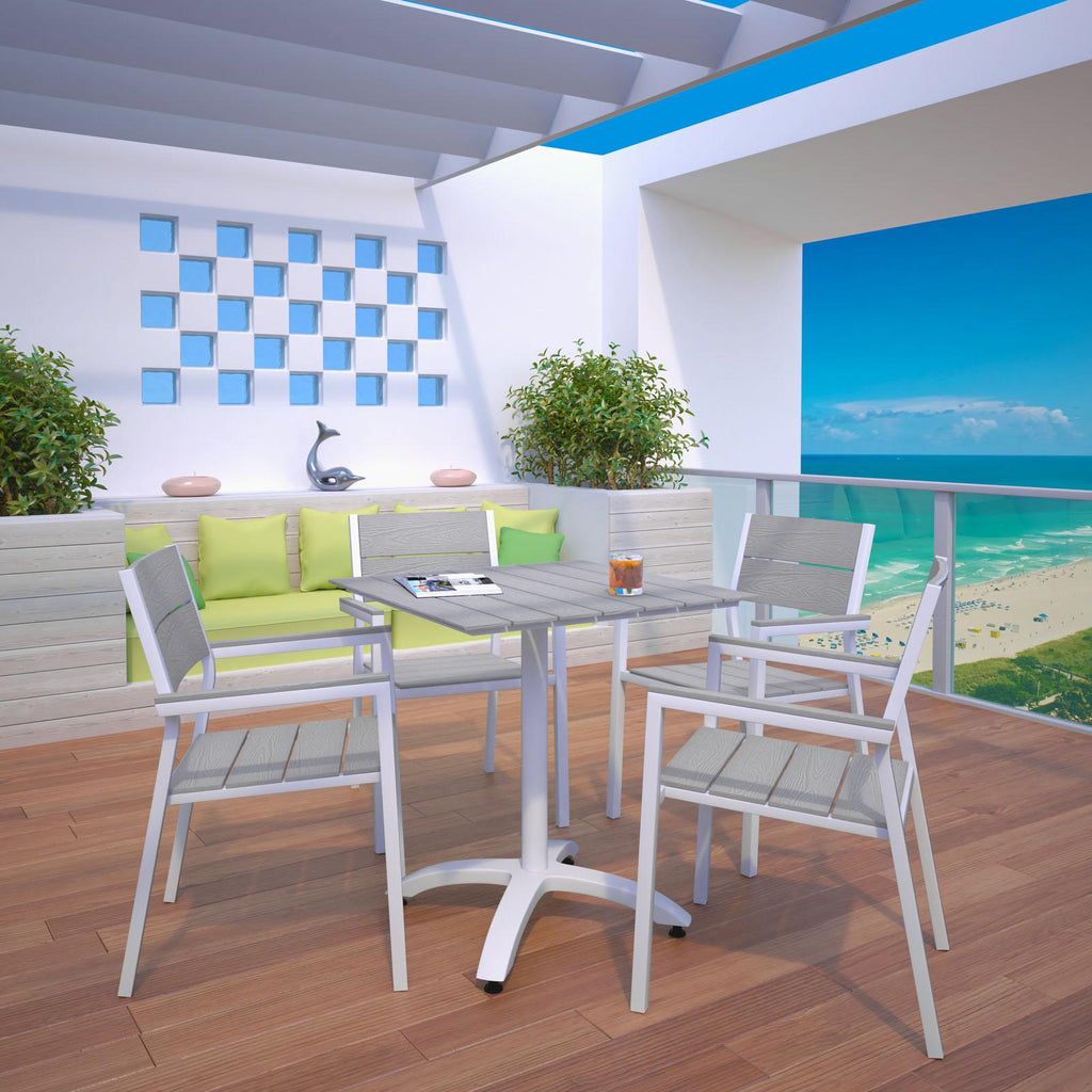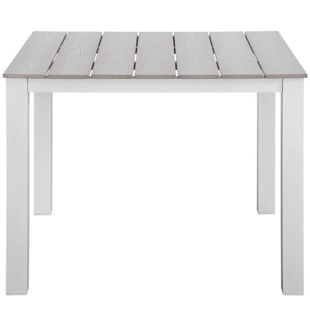 Bordered by the Atlantic Ocean rests the Maine Outdoor Patio Dining Furniture Collection. Distinguished by its synthetic wood grain plank boards, powder-coated aluminum frame, inspired design, and rich organic feel, Maine Outdoor Dining Set stands out as a versatile series for outdoor dining. This contemporary modern patio dining set is perfect for contemporary patios, backyards, poolside, and other outdoor lounge areas.