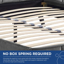 Make comfortable sleep and luxurious style the focal point of your master or guest bedroom with the Makenna Performance Velvet Queen Platform Bed. A contemporary modern take on the classic wingback design, the Queen Performance Velvet Headboard of this upholstered platform bed frame comes with a generously padded, tufted design in a sleek tiled pattern. Resting atop splayed black lacquered wood legs with non-marking foot caps, and a reinforced center beam with four support legs, Makenna features stain-resistant performance velvet fabric granting a soft textured feel supportive of every use. This Queen Platform Bed with a wood slat support system eliminates the need for a box spring and provides a sturdy mattress foundation for memory foam, latex, innerspring and hybrid mattresses. Bed Weight Capacity: 1322 lbs.