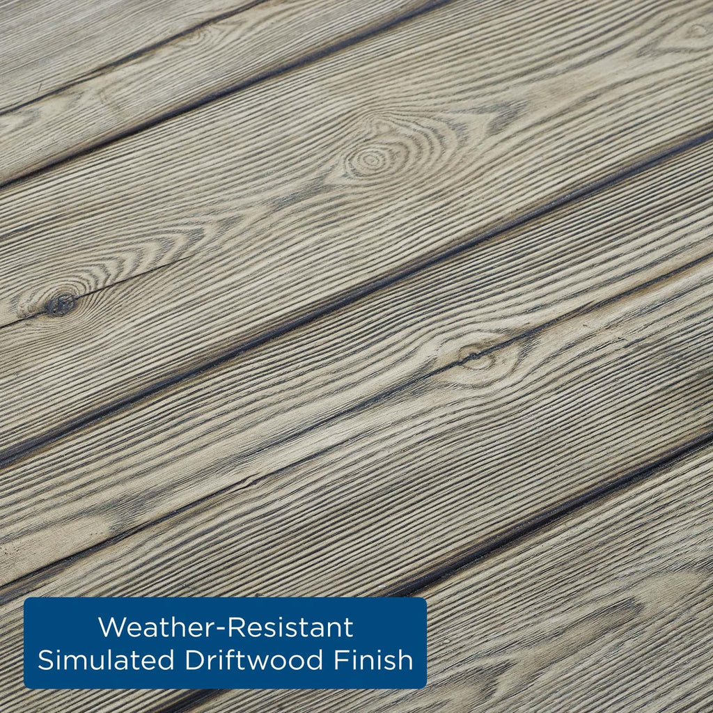 Capture a lakeside or cabin setting with the Manteo Outdoor Patio Sofa Set with Fire Pit Table. Solid magnesium oxide molding coated with a simulated driftwood finish create a stylish and sturdy finish. Complete with generously padded all-weather cushions, enjoy your outdoor leisure time with this versatile sofa set for your backyard, deck, lake house, patio, poolside, or porch. Tempered glass beads fill the center of the rectangular fire pit, lighting up surrounding silhouettes with a cozy golden glow. This propane gas fire table with a 50,000 BTU burner creates a smoke-free flame, is CSA certified, and burns up to 8 hours on high or up to 16 hours on low. Manteo comes with a protective PVC cover when not in use, and is easy to control for consistent heat with a simple turn of a knob and touch of an ignition button. Furniture equipped with non-marking foot caps and a protective cover, this comfortable outdoor sofa set will update your patio decor with a rustic modern feel.