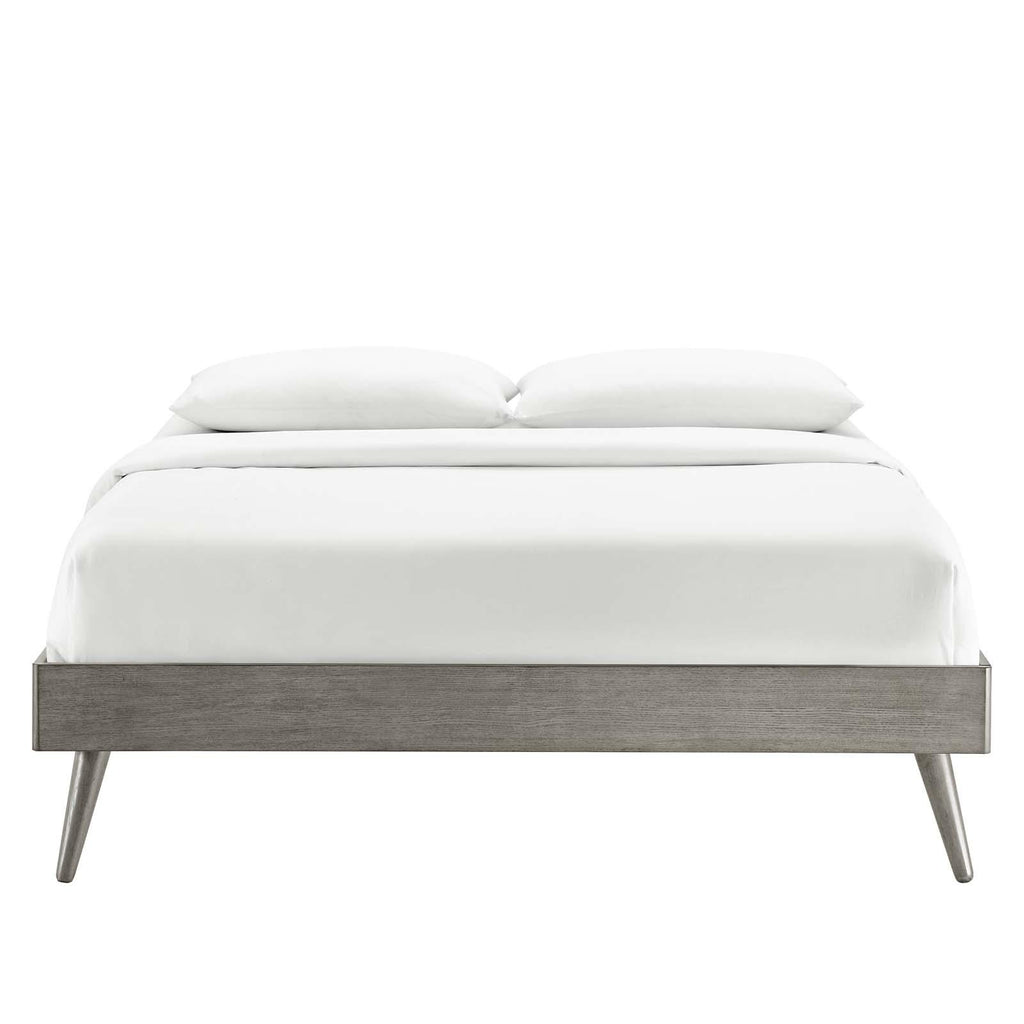 Incorporate modern style and comfortable sleep in the bedroom with the Margo Queen Platform Bed. Inspired by mid-century design, this queen size bed frame boasts retro detail with contemporary accents and organic aesthetics to bring trending modernity to your master bedroom or guest room. Adapting to any decor theme with the option of interchangeable headboards, this bed frame is compatible with the Robbie, Draper, Archie, and Collins headboard collections. This platform bed frame is a sturdy addition to the bedroom with a durable wood, MDF, and veneer construction and four splayed rubberwood legs. Eliminating the need for a box spring, this queen bed is complete with a wood slat support system, reinforced center beam, and supporting legs that make it a lasting mattress foundation for memory foam, latex, innerspring, and hybrid mattresses. Assembly required. Queen Bed Frame Weight Capacity: 601 lbs. Set Includes: One - Margo Queen Platform Bed Frame Queen Platform Bed Frame Interchangeable Headboard Options "Wood, MDF, and Veneer Construction" Wood Slat Support System Rubberwood Legs Assembly Required Weight Capacity: 601 lbs. Overall Product Dimensions: 82.5"L x 63.5"W x 15"H Footboard Dimensions: 0.5"L x 63.5"W x 6"H Side Rail Dimensions: 82.5"L x 0.5"W x 6"H Inner Bed Size: 81"L x 62"W Leg Dimensions: 2.5"L x 2.5"W x 11"H Distance Between Slats: 3.5"L