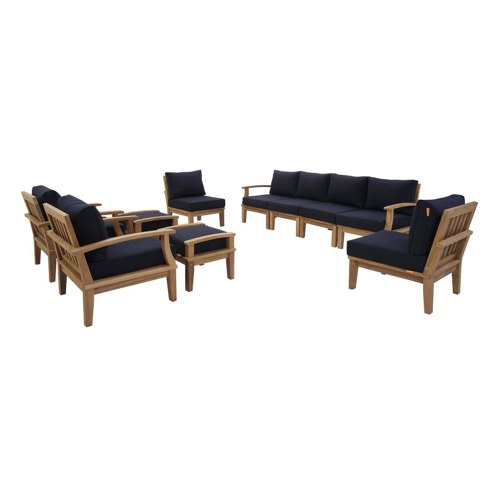 Harbor your greatest expectations with the luxurious Marina Teak Wood Outdoor Patio Furniture Sofa Sectional set. Marina Patio Furniture series has a seating arrangement perfect for every member of your crew as you breathe the fresh, crisp air of a day spent with friends and family. Known for its natural ability to withstand extreme weather conditions, teak is the wood selection of choice for long-lasting outdoor patio furniture. Now you can enjoy Marina Teak Wood Outdoor Sectional Sofa set with its durable construction and all-weather cushions, alongside a modern design that persistently looks new and welcoming in your patio seating environs. Assembly required.