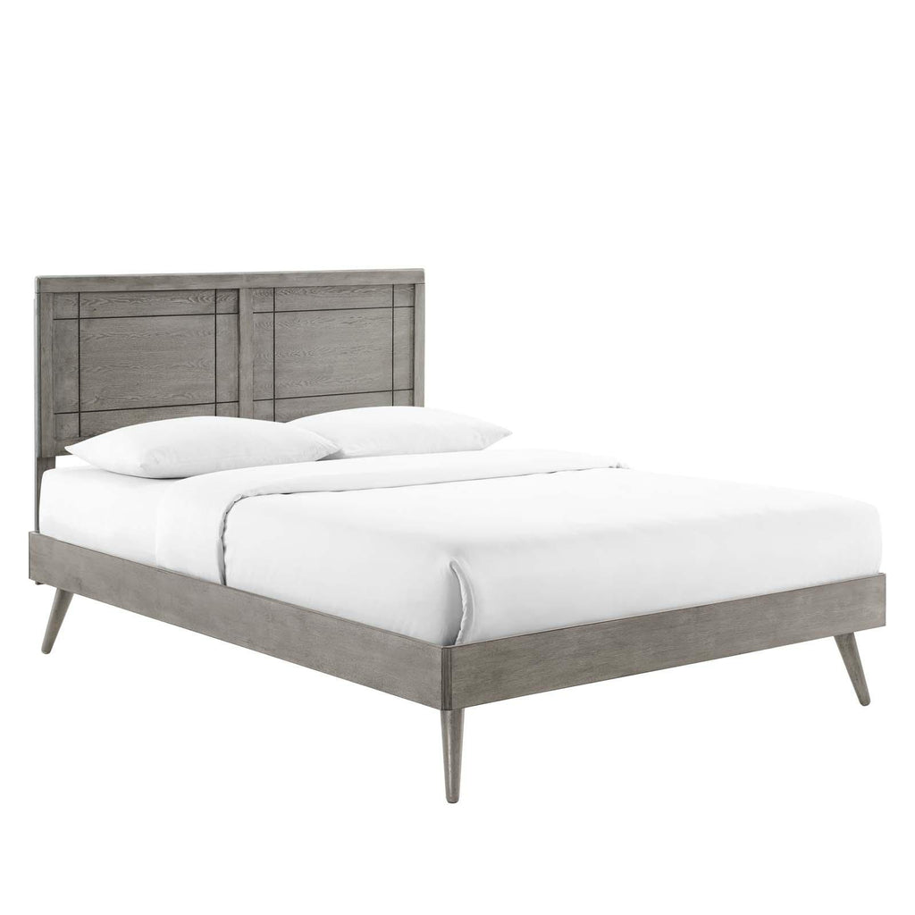 Incorporate modern style and comfortable sleep in your master bedroom or guest room with the retro detail and organic aesthetics of the Marlee Wood Twin Platform Bed. Inspired by mid-century design, the twin headboard of this wood bed features a beautiful window pane design that offers a traditional look. This platform bed frame is a sturdy addition to the bedroom with a durable wood, MDF, and veneer construction and splayed rubberwood legs. Eliminating the need for a box spring, this twin bed is complete with a wood slat support system, reinforced center beam, and supporting legs that make it a lasting mattress foundation for memory foam, latex, innerspring, and hybrid mattresses. Assembly required. Twin Bed Frame Weight Capacity: 601 lbs.