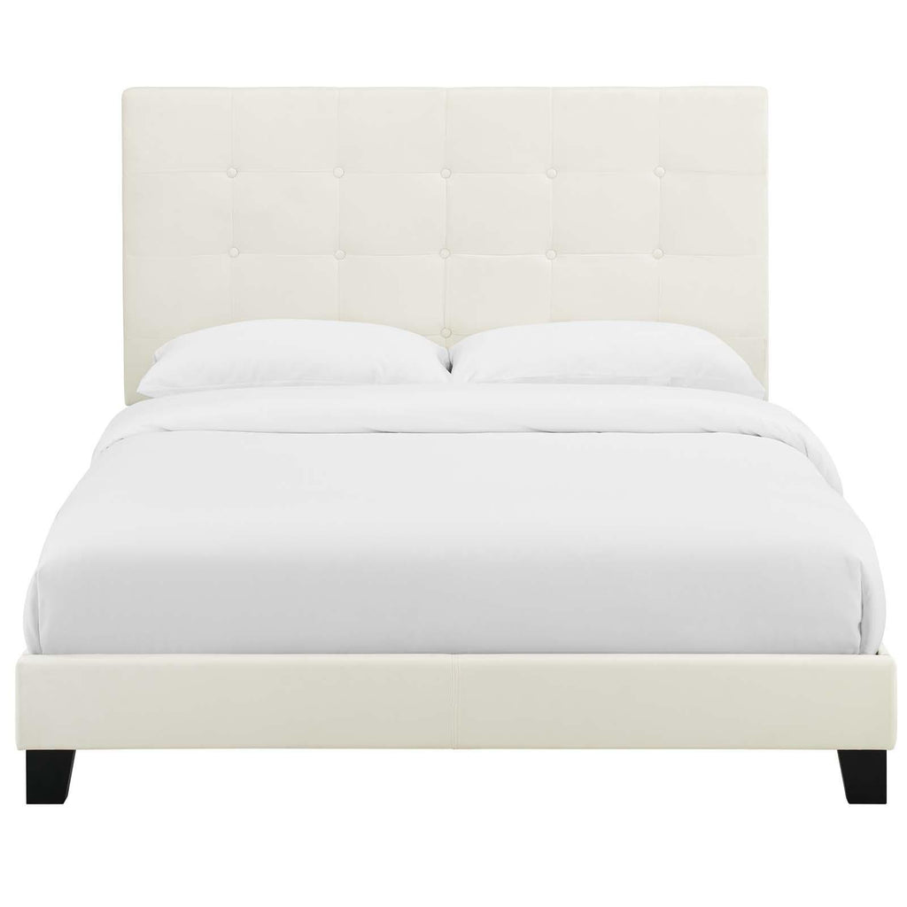 Clean lines, a straightforward profile, and classic button tufting define the Melanie Twin Platform Bed. Designed with chic elegance and contemporary style, Melanie's base and headboard come upholstered in luxurious stain-resistant performance velvet, while the sturdy wood frame and legs offer lasting durability. Eliminating the need for a box spring, this platform bed is complete with a wood slat support system and reinforced center beam creating the perfect mattress foundation for memory foam, spring, latex, and hybrid mattresses. A sleek and sophisticated centerpiece to a kid's bedroom, guest room or dorm, effortlessly transform bedroom decor with the luxe look of this modern platform bed. Includes non-marking foot caps. Bed Weight Capacity: 800 lbs.
