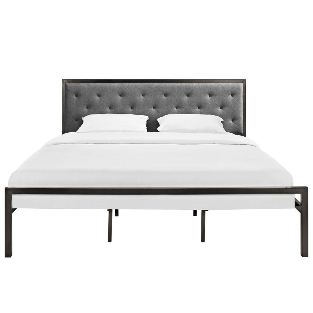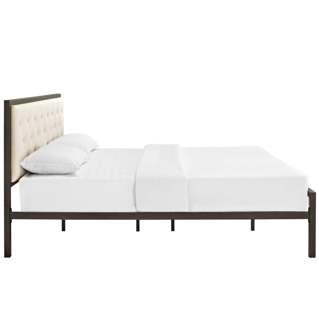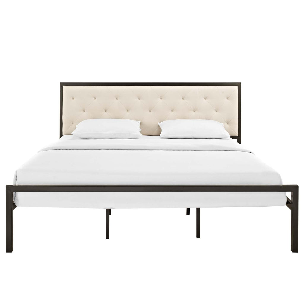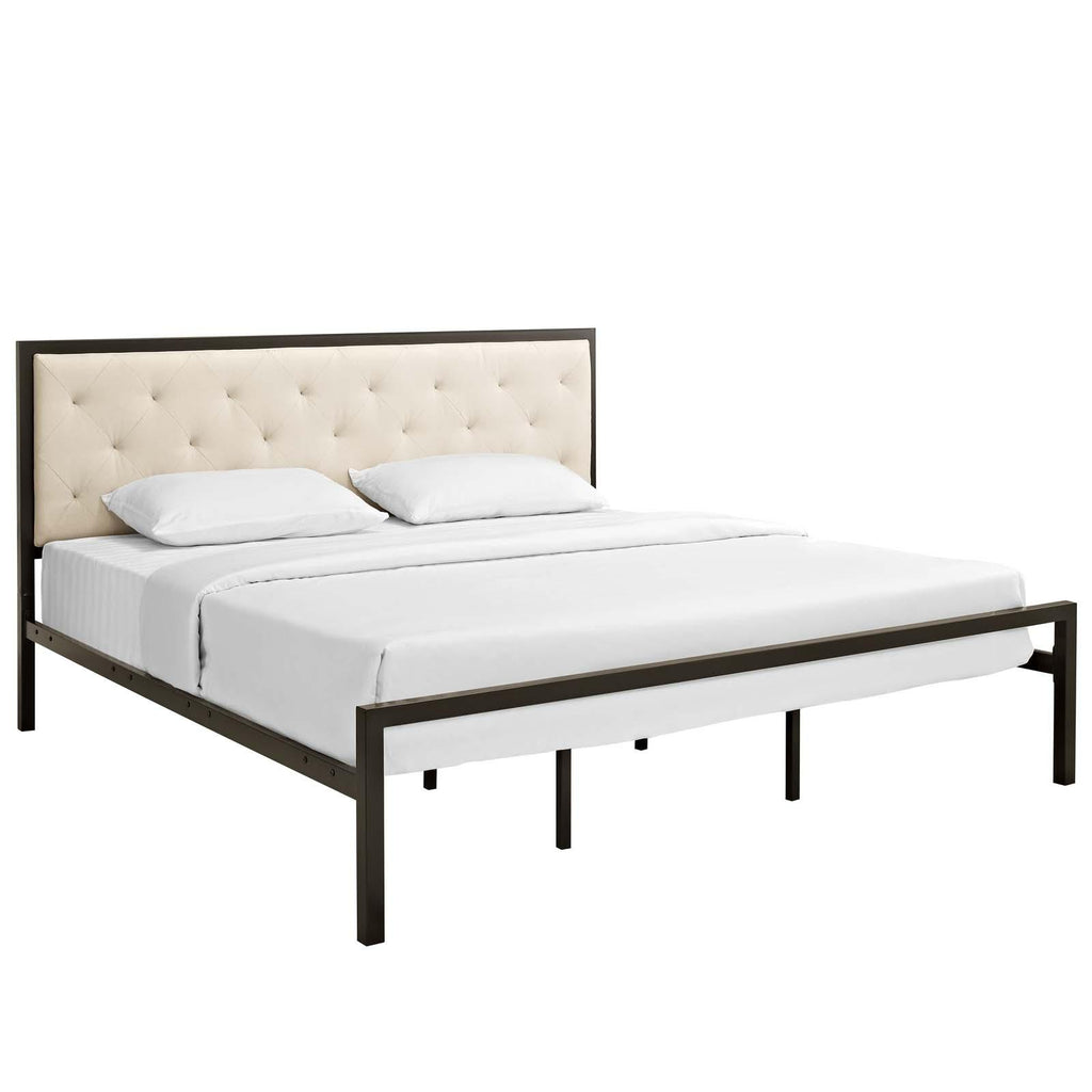 Sleep peacefully with a platform bed solid in both style and construction. Mia comes with a powder-coated steel frame that offers sturdy and long-lasting support, while the fabric headboard with deep tufted buttons adds a touch of magnificence to an otherwise minimalist design. The Mia Platform King Bed does not require a box spring. King mattress not included. Set Includes: One - Mia King Platform Bed Frame Platform bed frame with headboard Steel rod mattress support system Tufted button fabric headboard Powder-coated steel frame Does not require a box spring Assembly required Weight Capacity: 1200 Pounds Overall Product Dimensions: 84"L x 78.5"W x 43.5"H Headboard Dimensions: 3"L x 78.5"W x 43.5"H Footboard Dimensions: 1.5"L x 78.5"W x 17.5"H